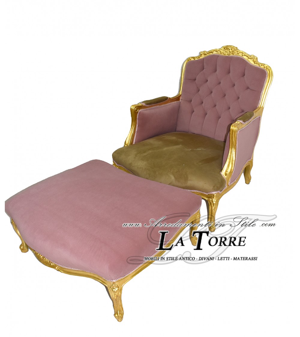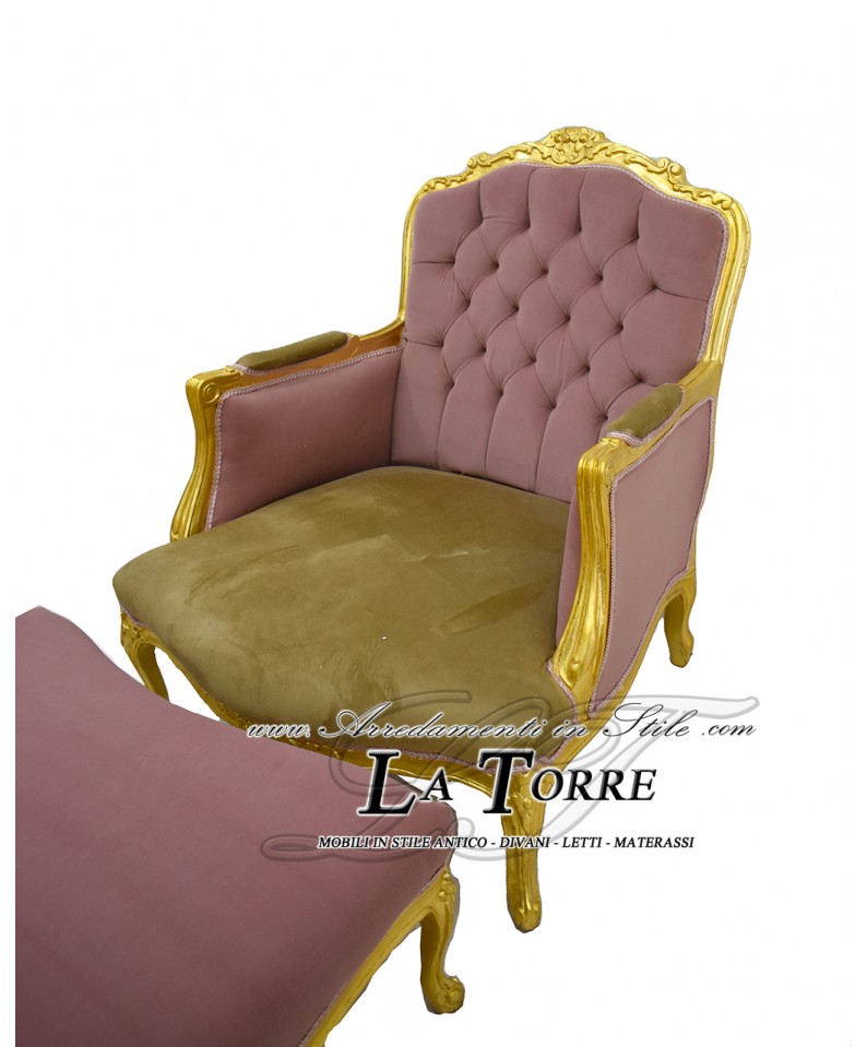 Chair Armchair Germany Baroque Throne Footstool, Gold Leaf, Velvet LT3035