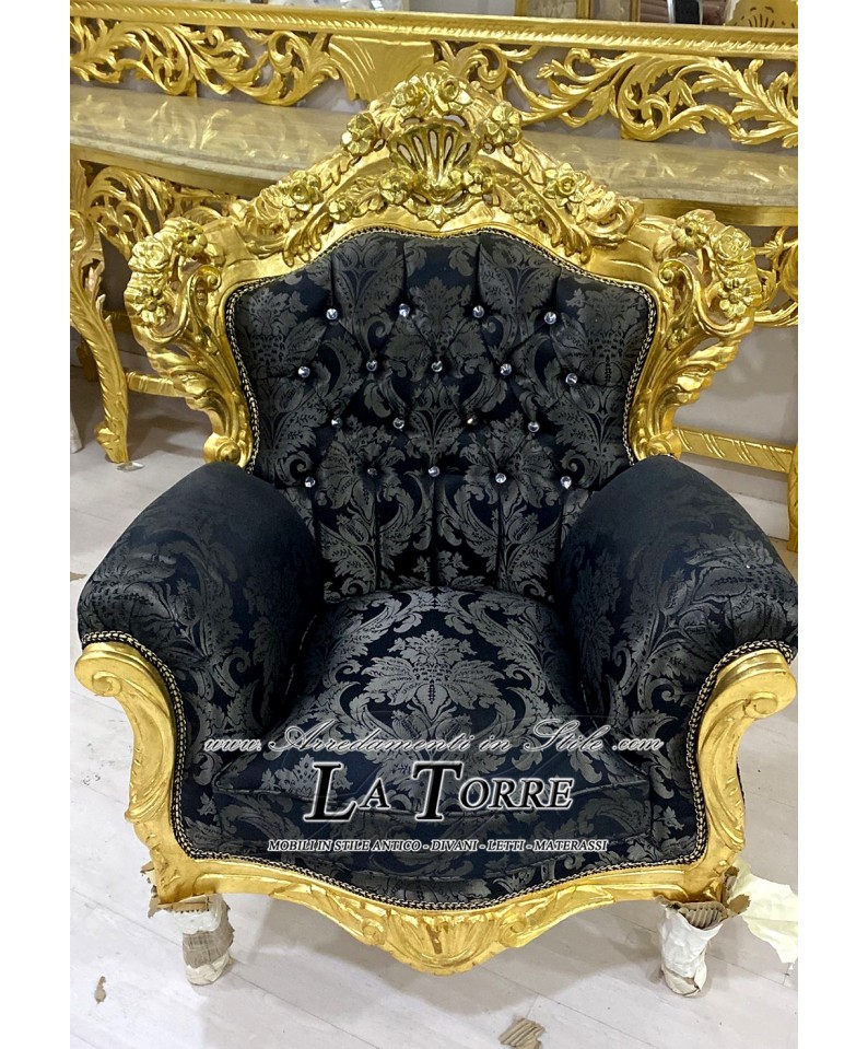 Armchair Germany Throne Baroque chair gold black damask fabric swarovski AL4227