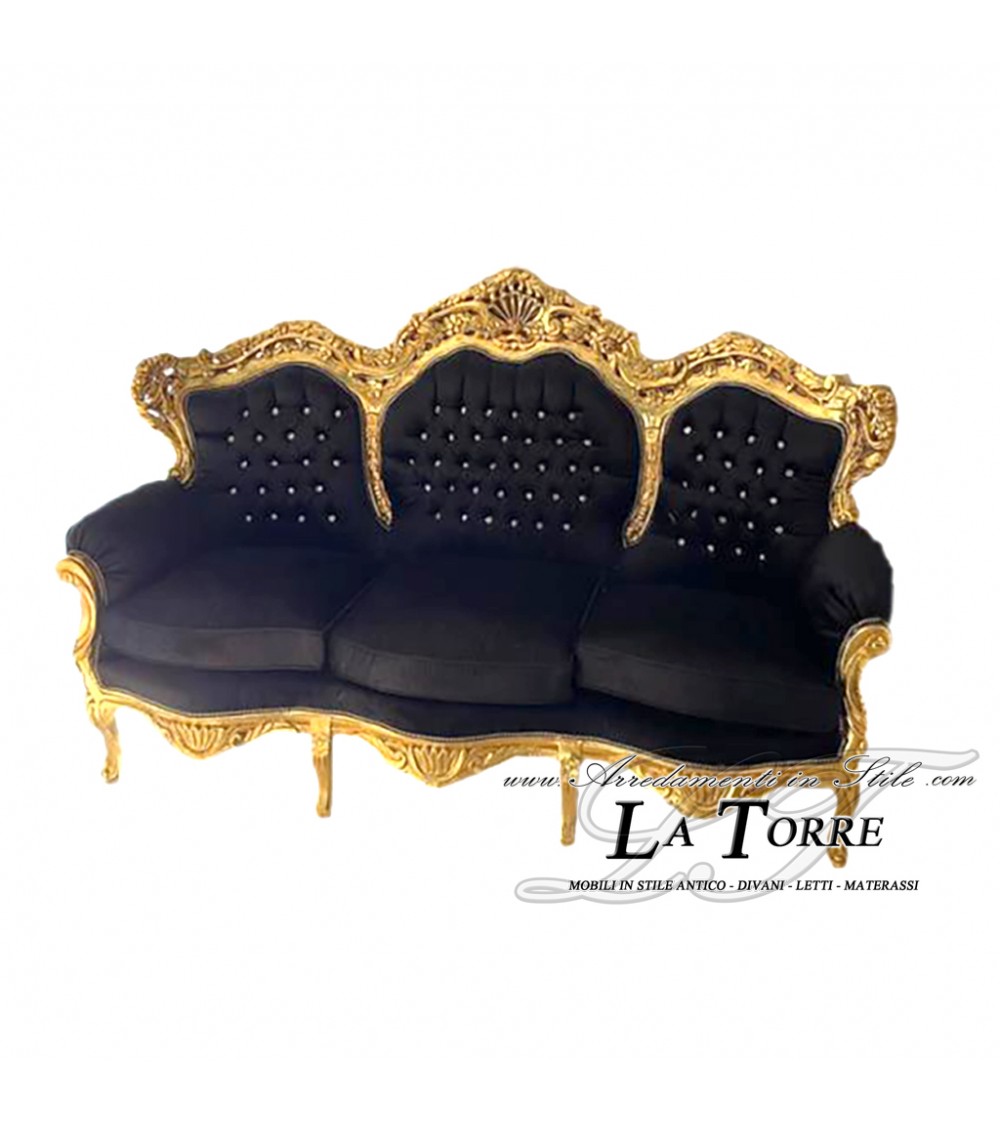 Baroque 3 seater sofa armchair Germany living room gold leaf solid wood black velvet MA0508