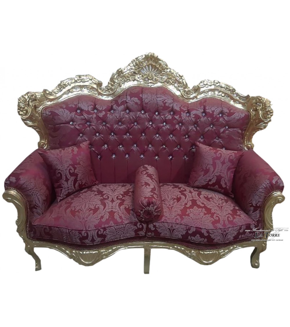 Sofa Armchair Germany Living Room Baroque Gold Leaf solid wood burgundy lily damask fabric MA0104