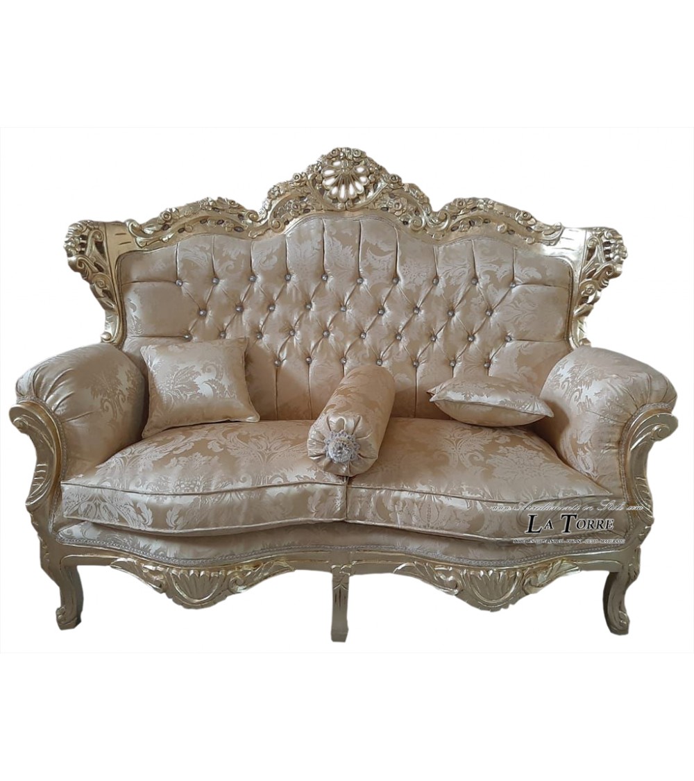 Sofa Armchair Germany Living Room Gold Leaf Baroque solid wood gold damask fabric MA0104
