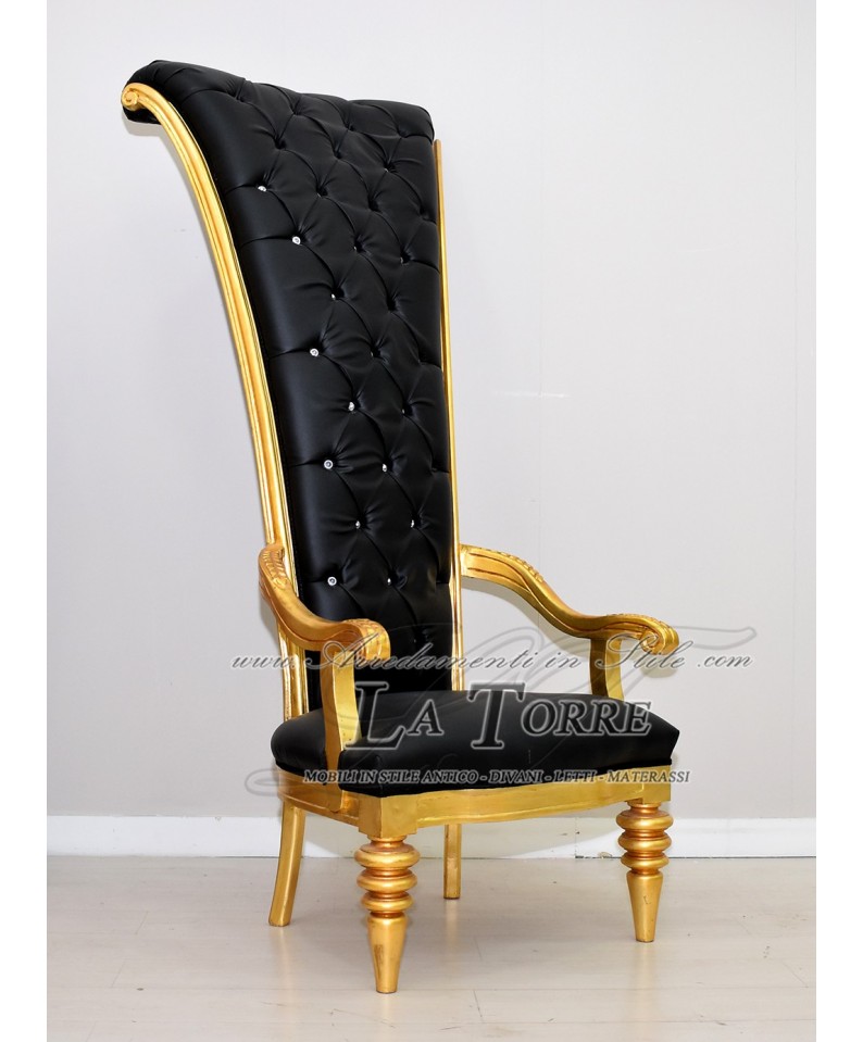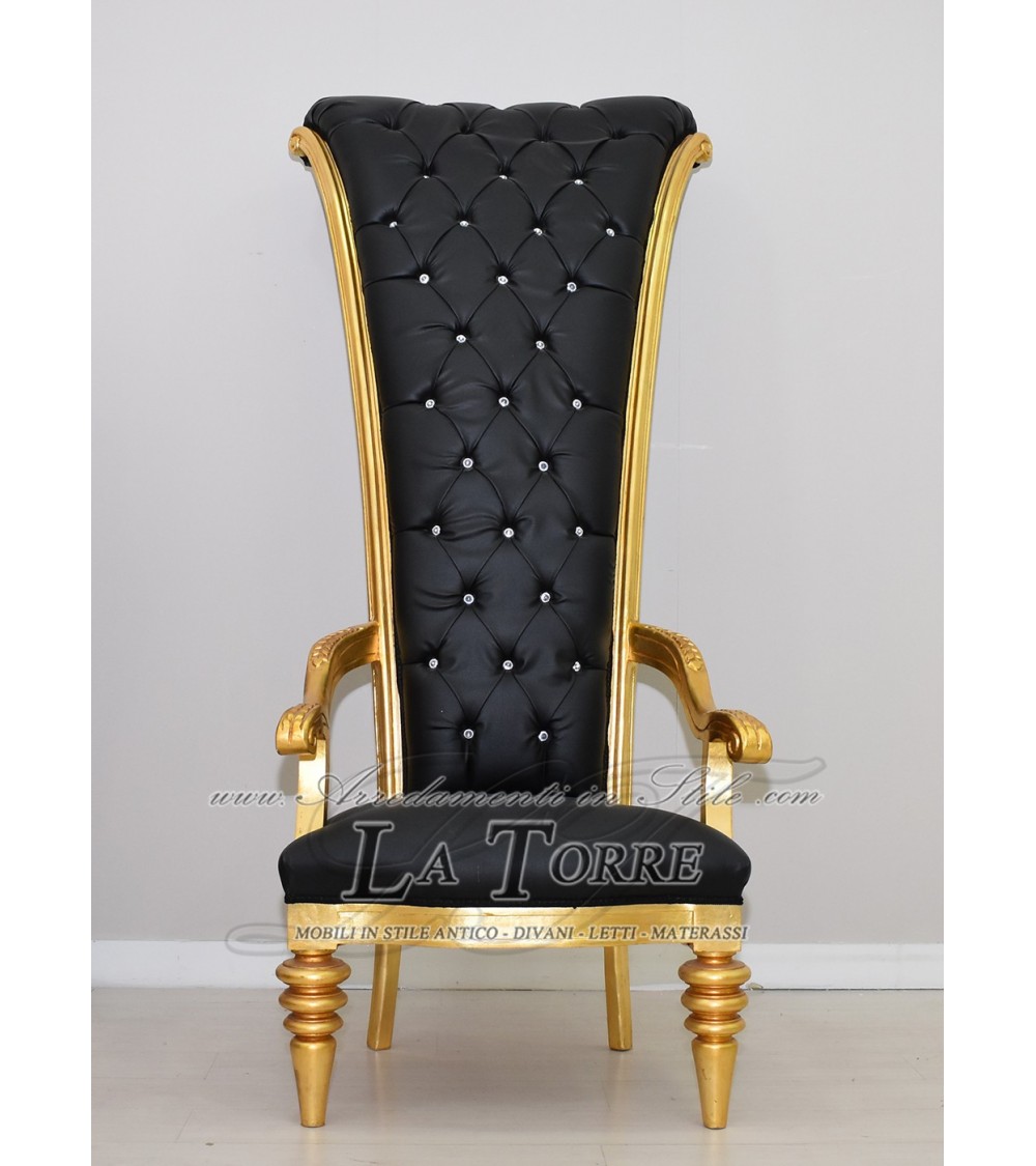 Louis XV Baroque Throne Armchair Modern Chair H192 Gold Black Eco-leather AL917
