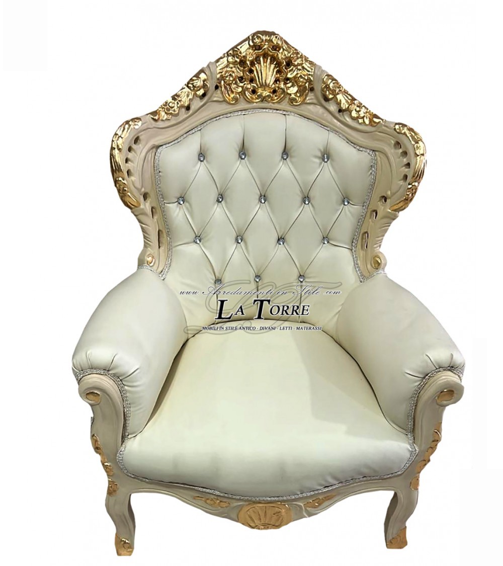 Chair Armchair Germany Baroque Throne eco-leather cream ivory and gold structure AL4227