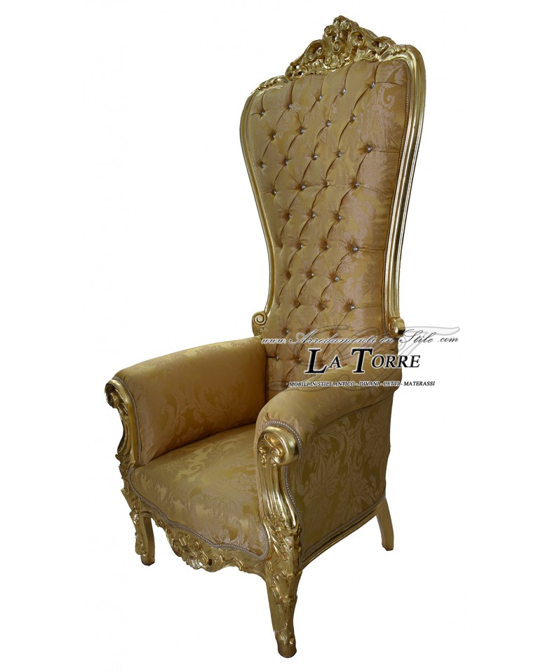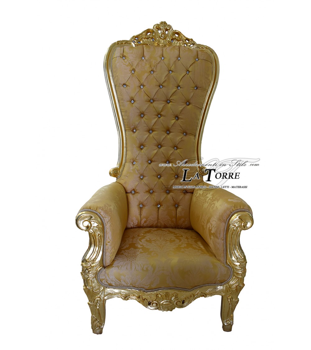 Baroque style throne armchair gold leaf structure gold damask fabric Swarovski Ar7579