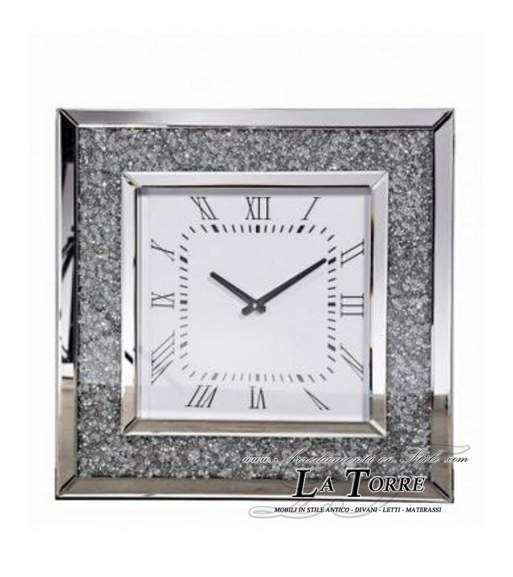 Modern Square Wall Clock with Crystals – Luxury Mirrored Frame 50x50 cm CBC86