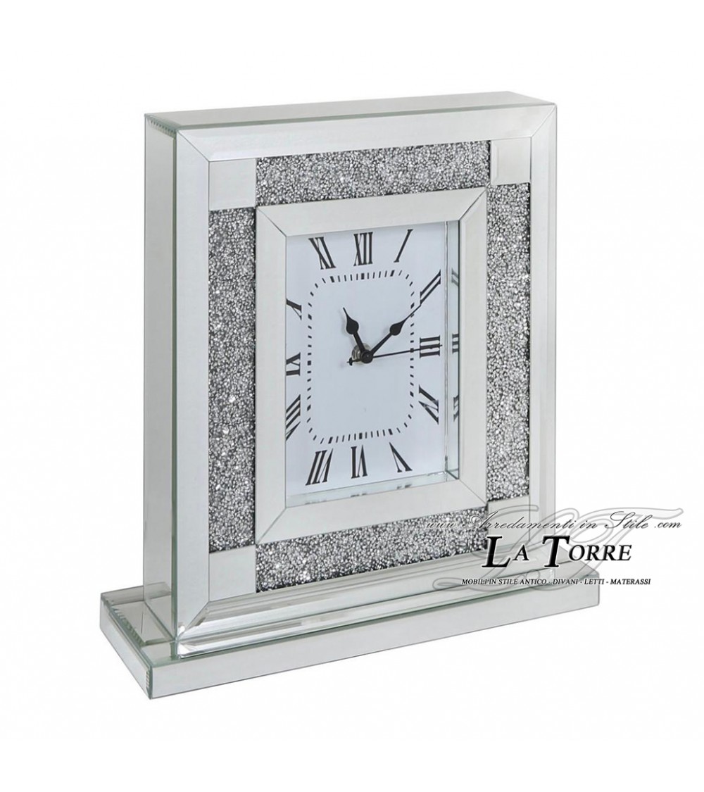 Modern Table Clock with Swarovski Crystals – Luxury Mirrored Frame 30x33H cm C180