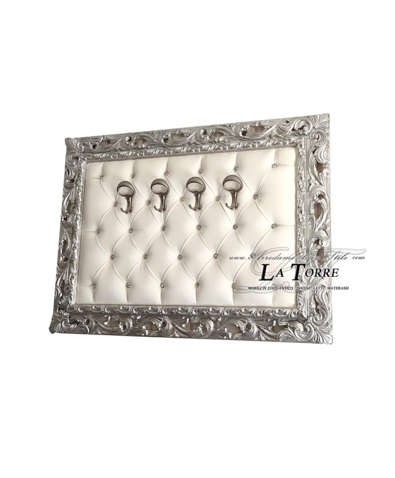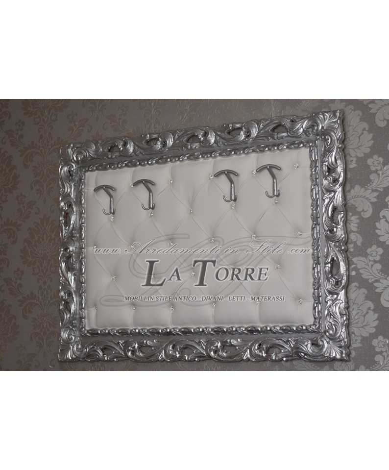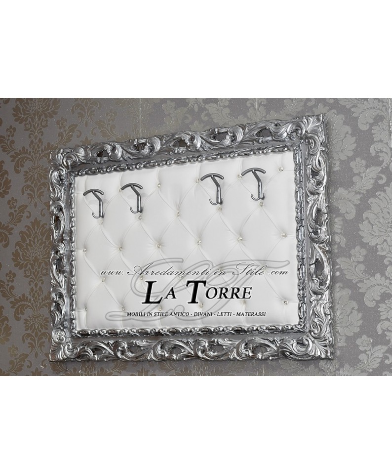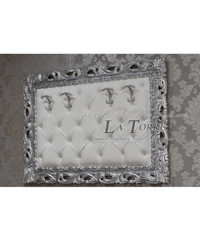 Baroque wall coat hanger Silver white faux leather Swarovski