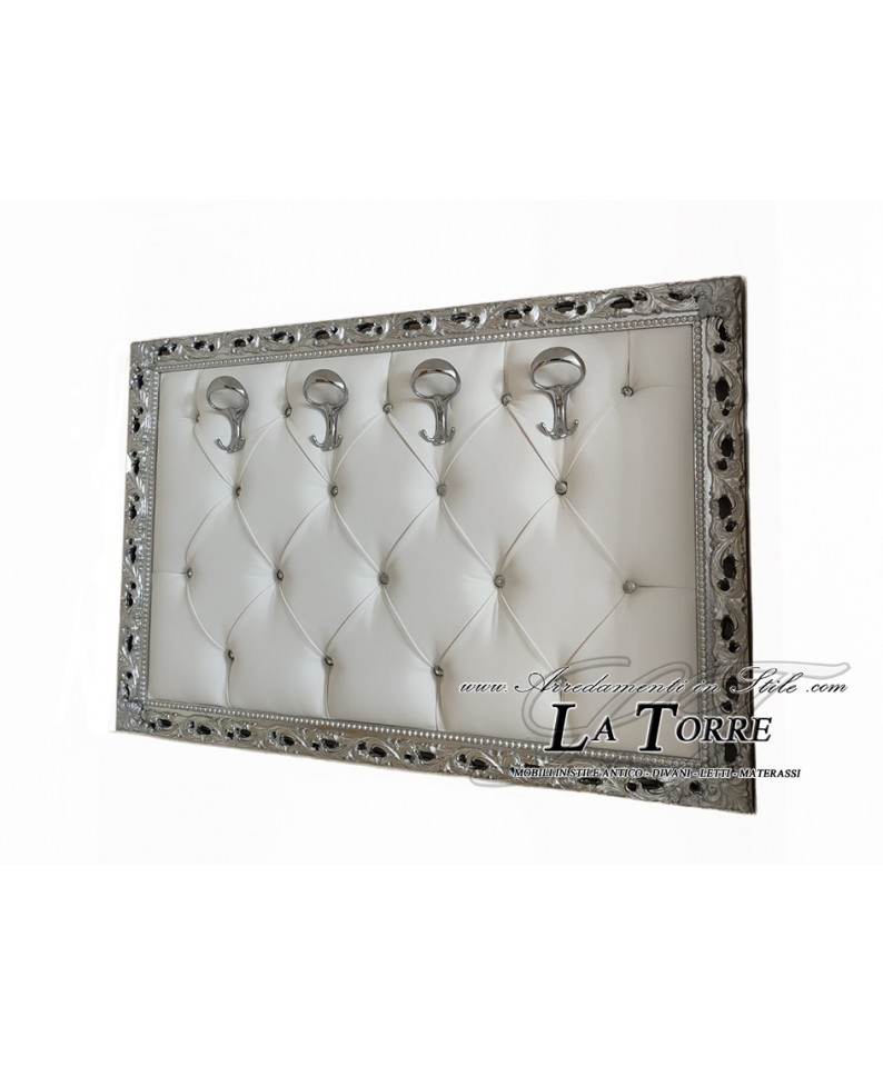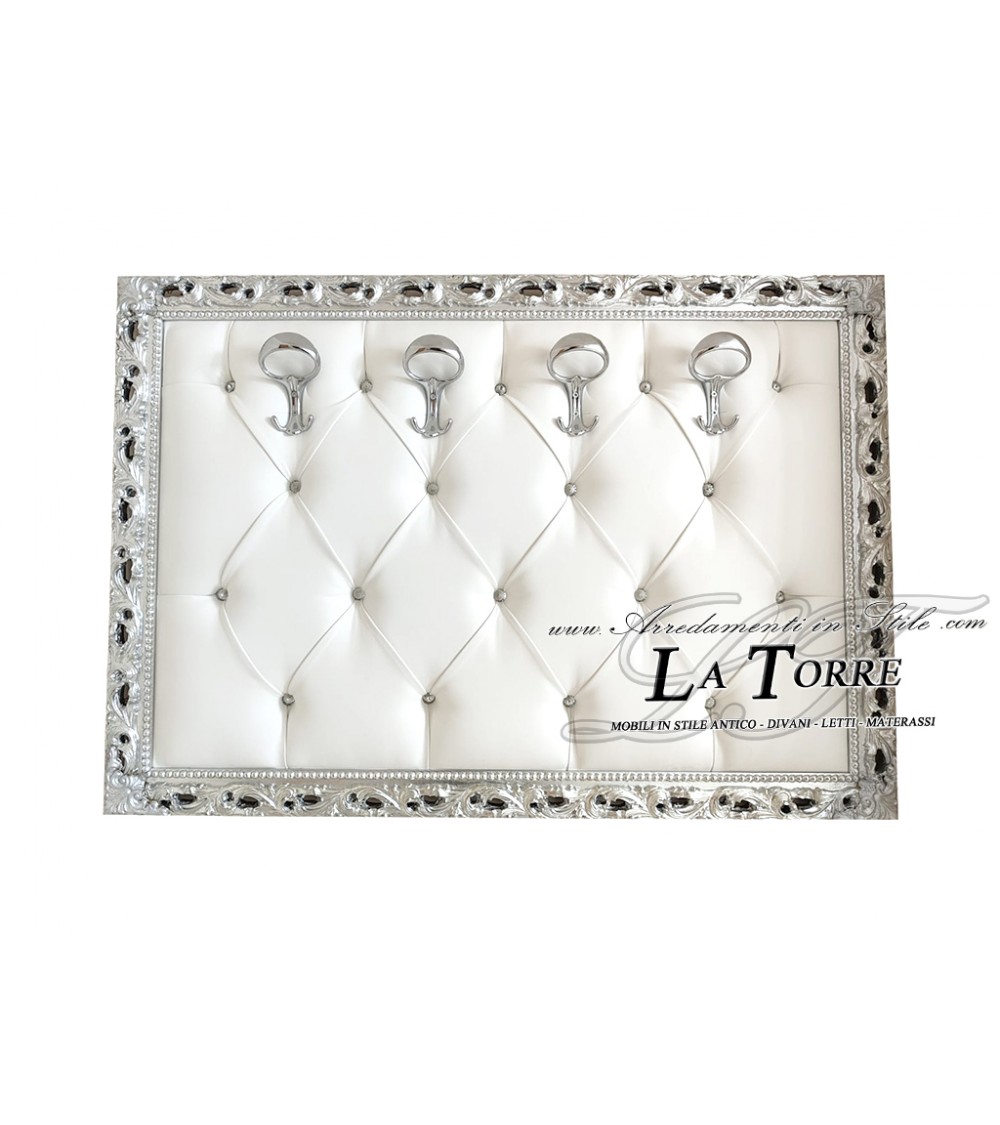 copy of Baroque wall coat hanger Silver white faux leather Swarovski