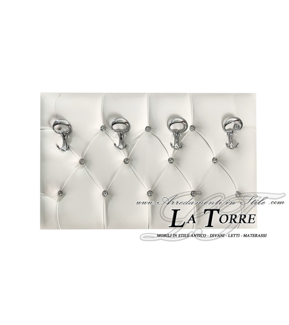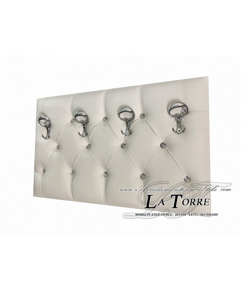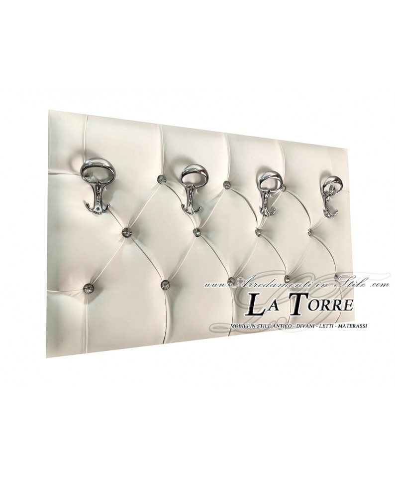 Wall coat hanger capitonné coat stand white faux leather swarovski