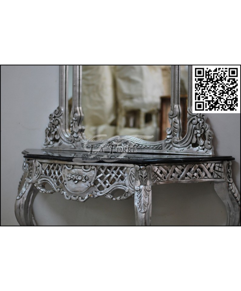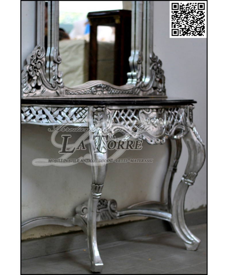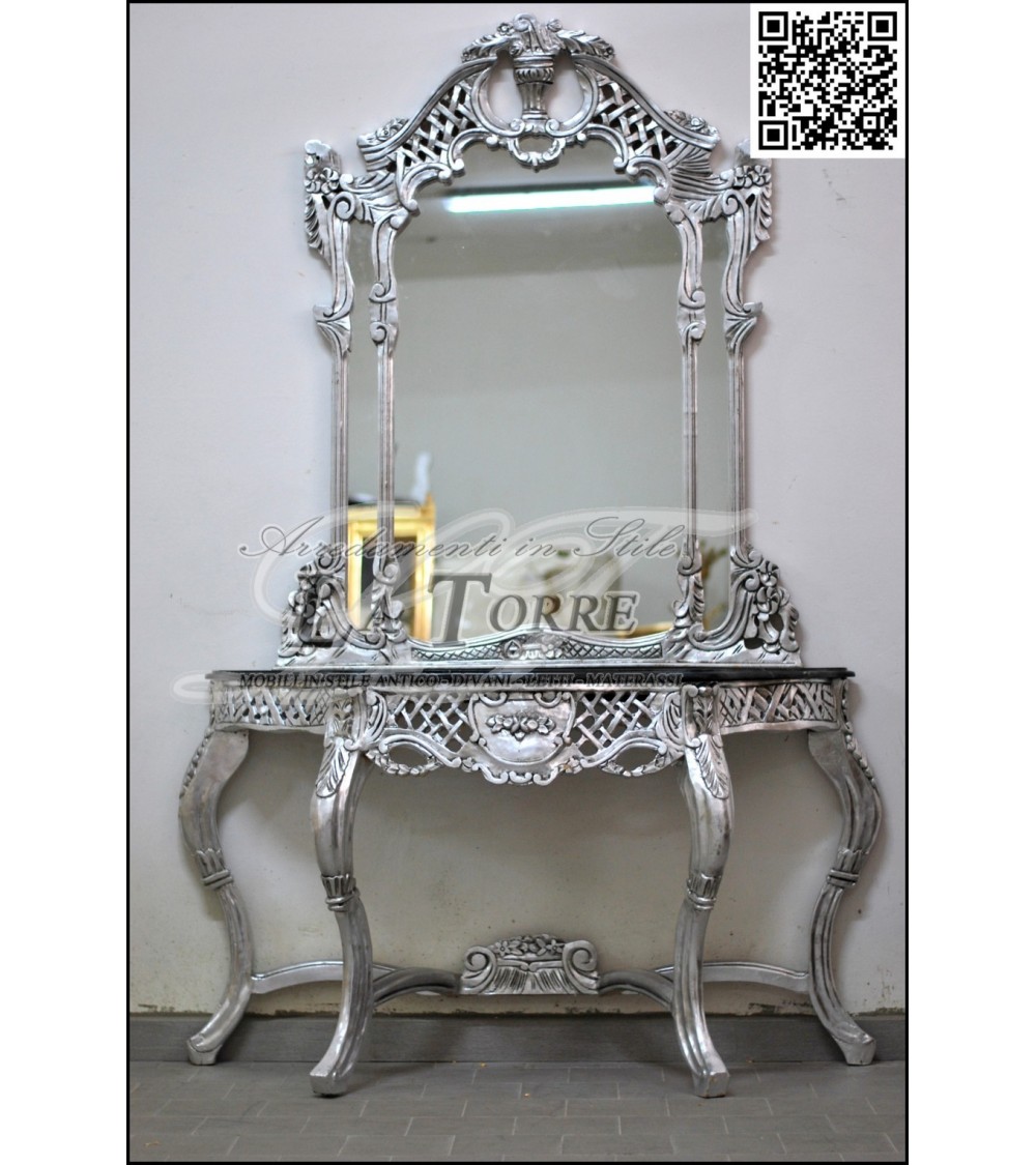 Console with mirror in Baroque Louis XV silver with AL1020 marble