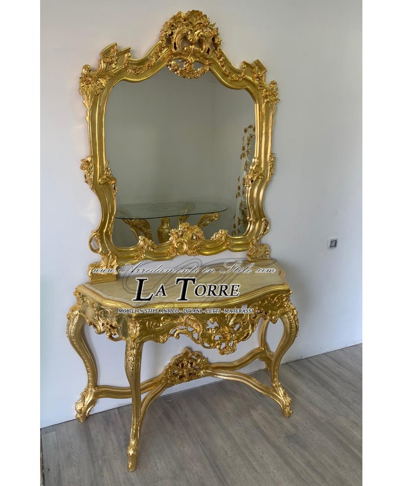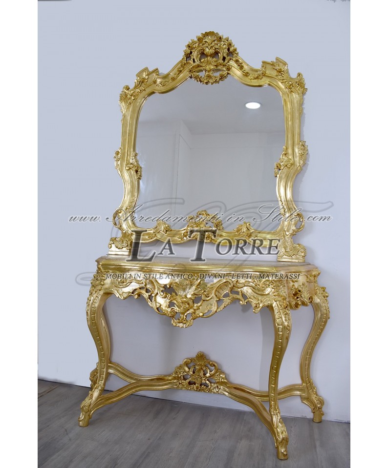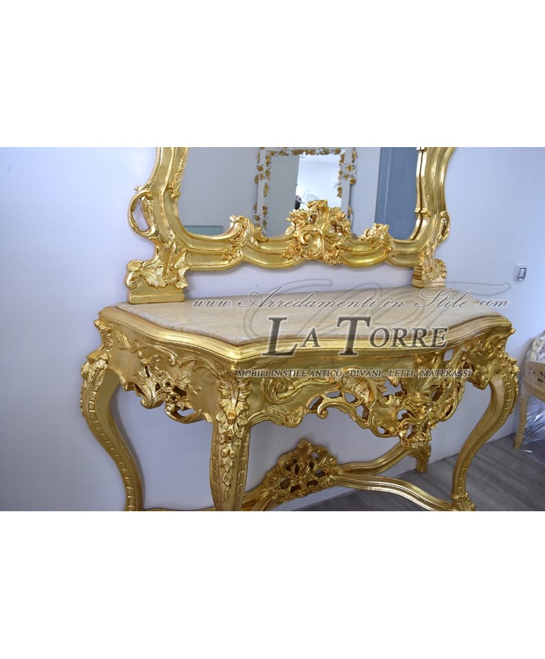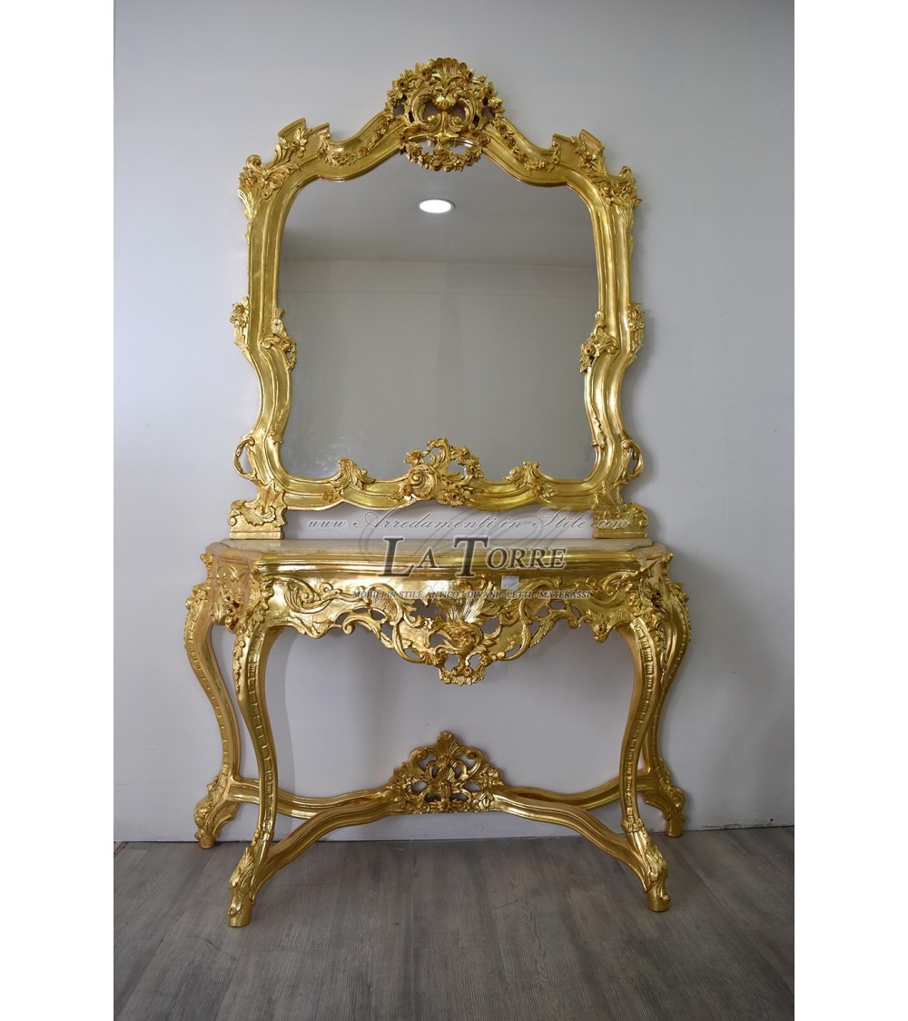Entratina Mirror Console Louis XV Baroque Gold Leaf Marble AL9202