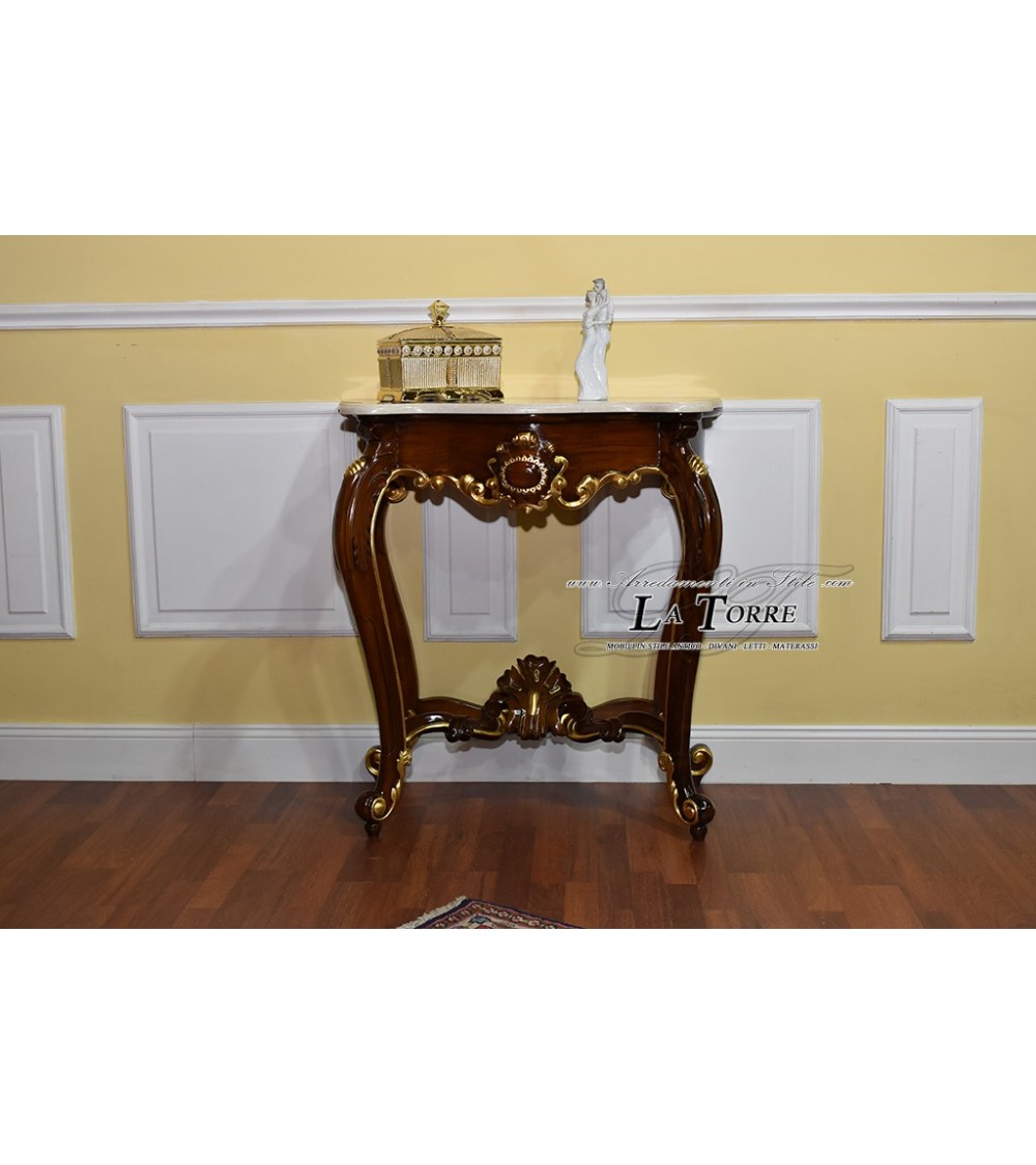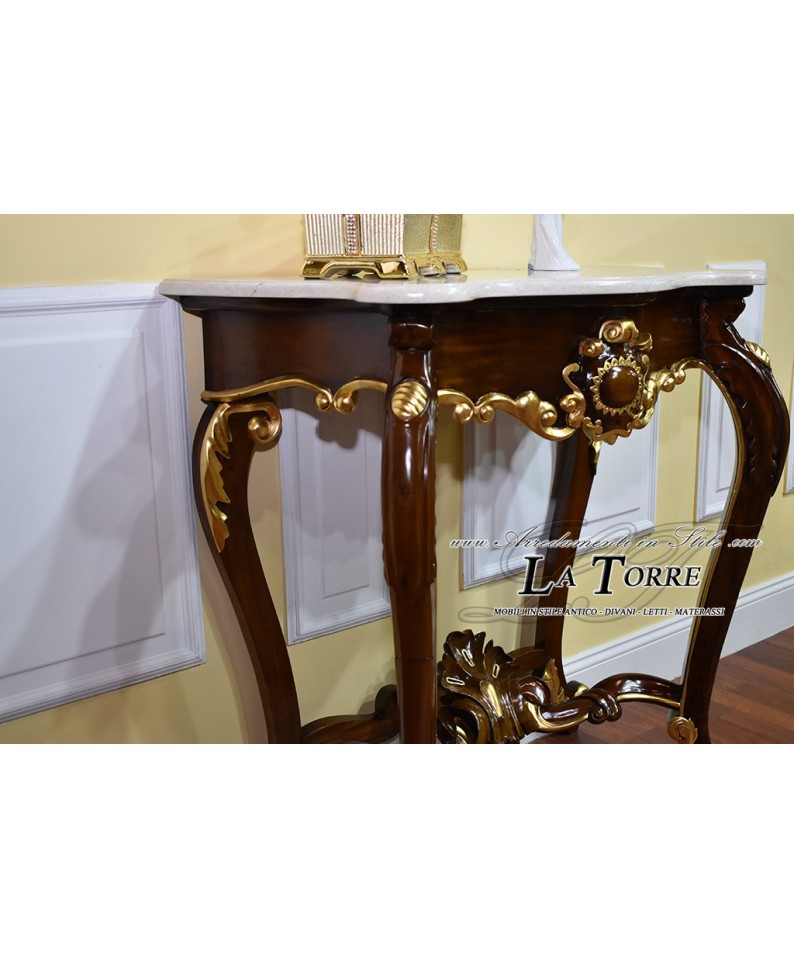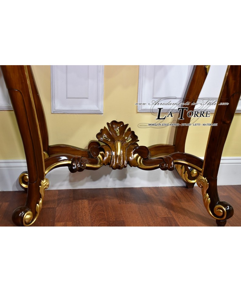 Console Luigi Filippo Neapolitan style 800 gold walnut cream marble 90 cm Na37