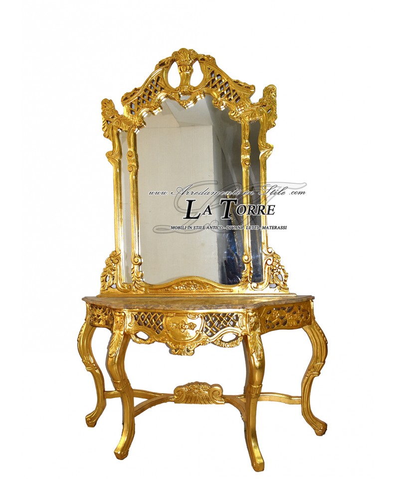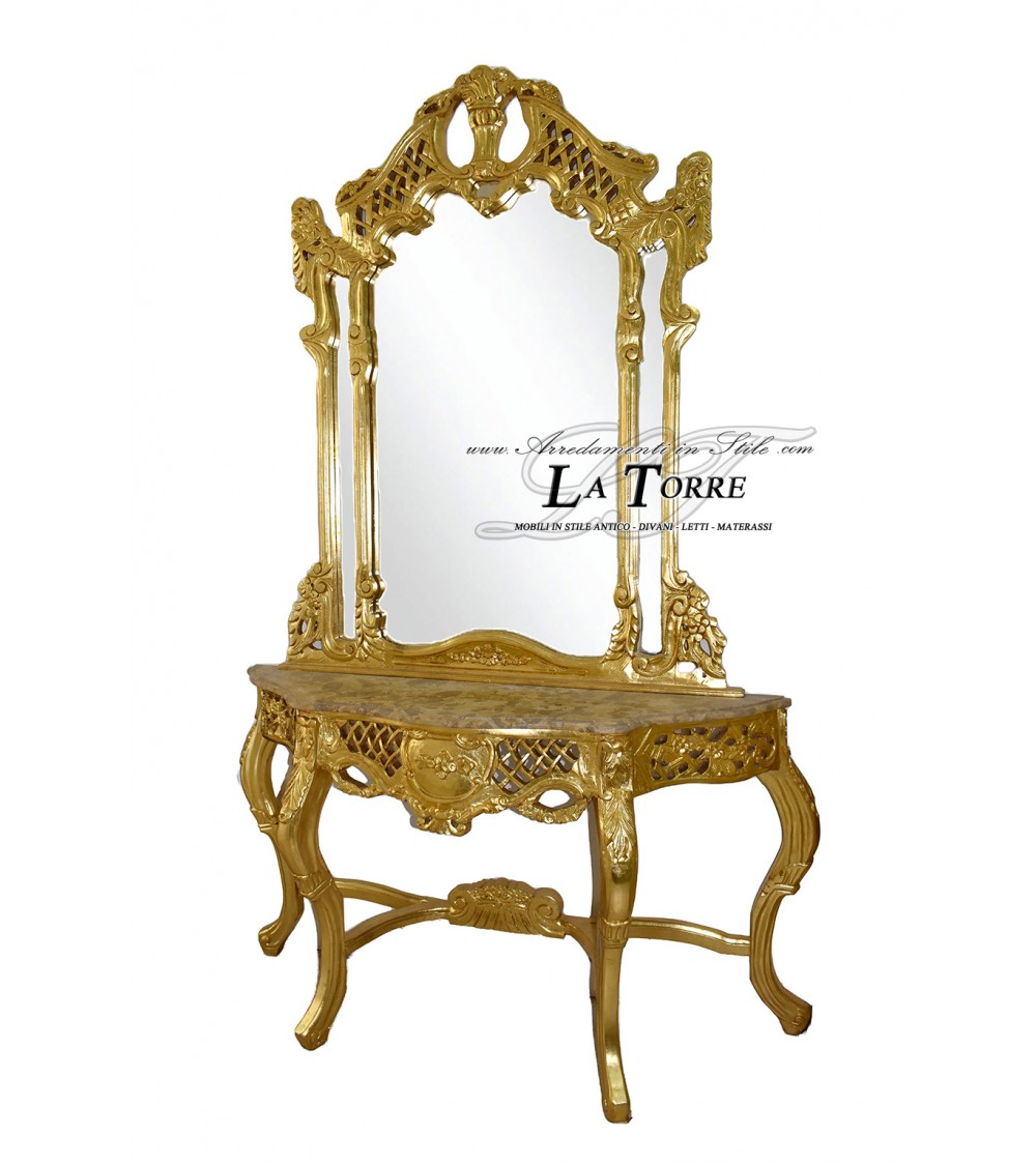 Entrance console with mirror Louis XV Baroque gold leaf marble LT3040