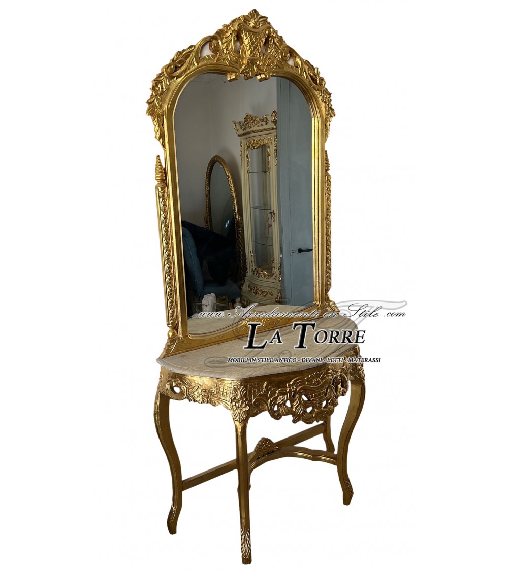 Baroque Louis XV console with mirror in wood gold leaf entrance in ivory marble LT3052