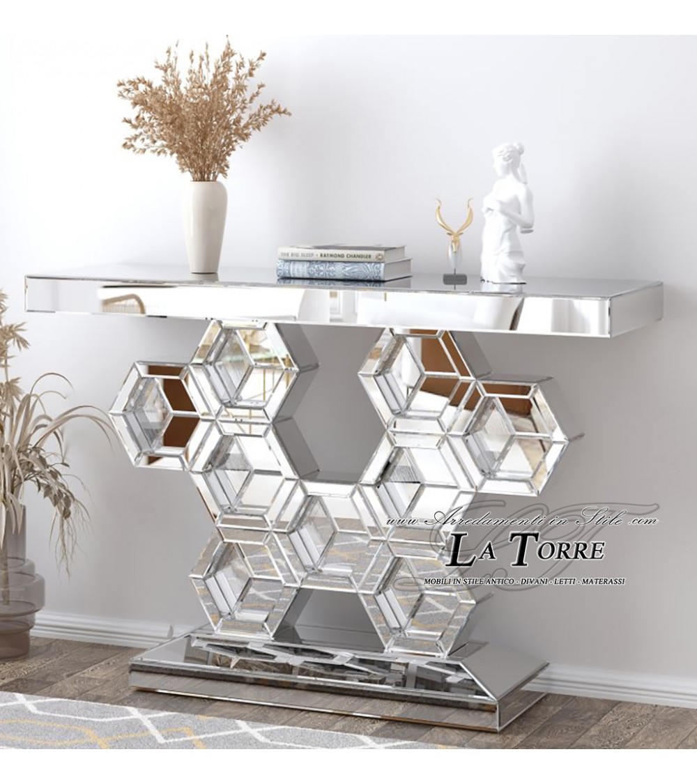 Transform your entrance or living room with this modern mirrored console table featuring an exclusive design.