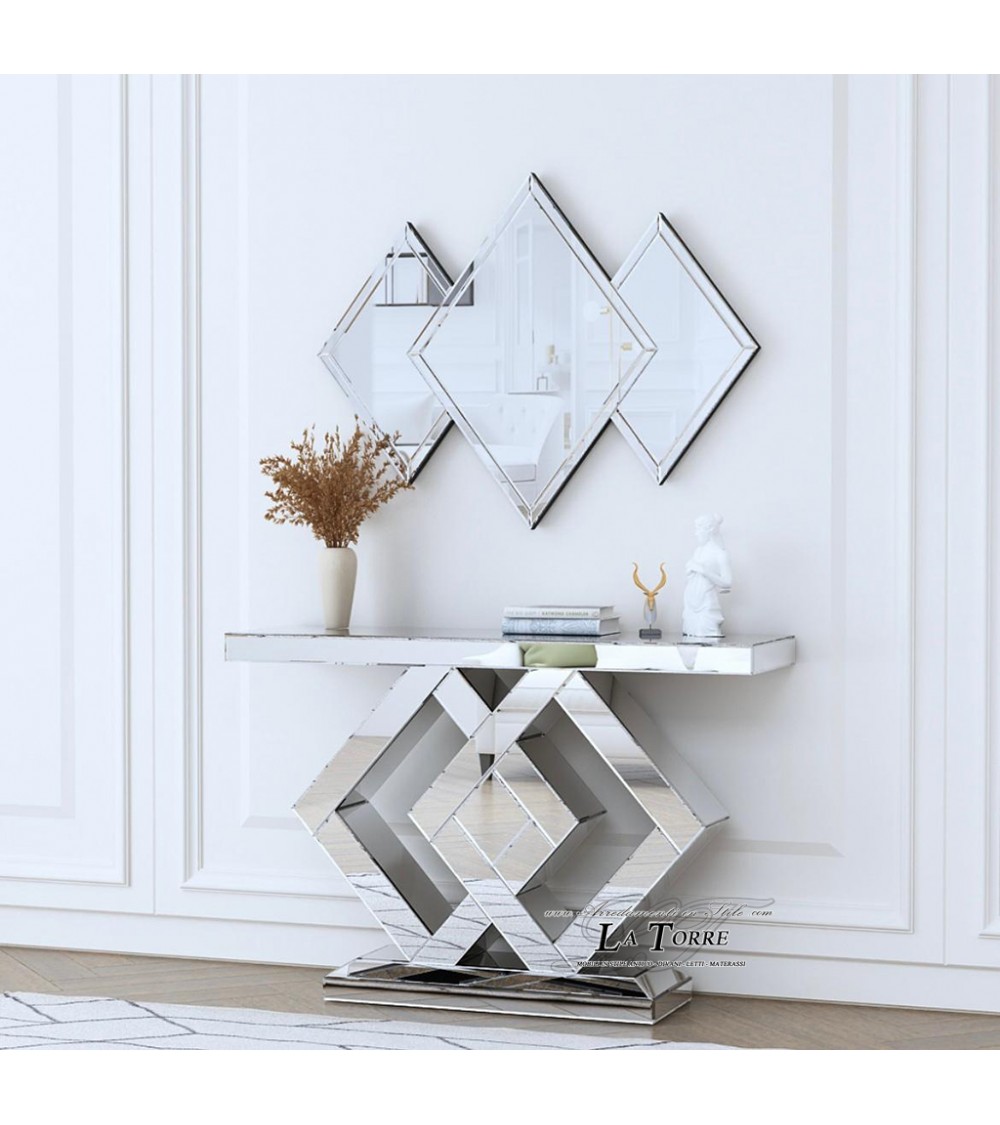 Make the entrance of your home unique and refined with this modern mirrored console table, featuring a luxury geometric design that captures attention and reflects light, creating a welcoming and bright atmosphere.
