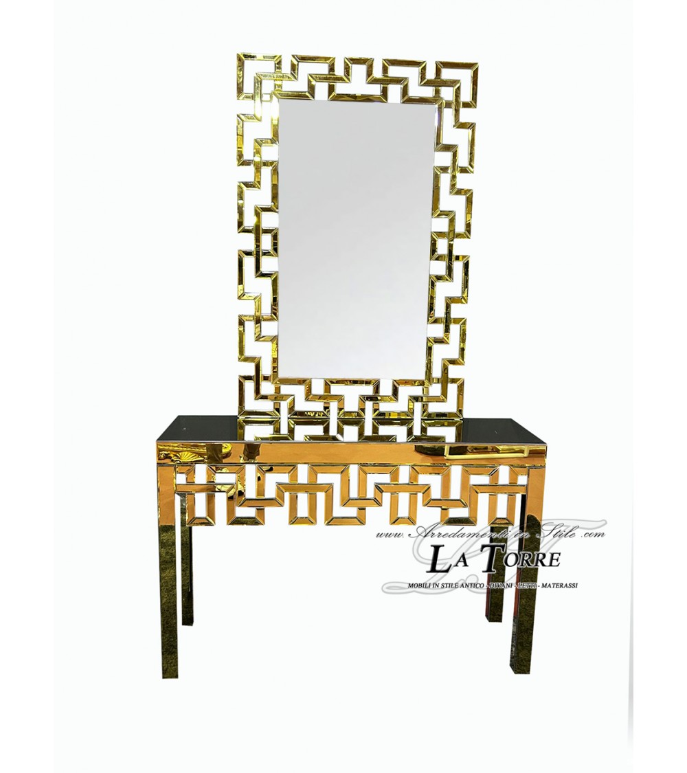 Modern Mirrored Console Table with Geometric Details for Entrance E834/o
