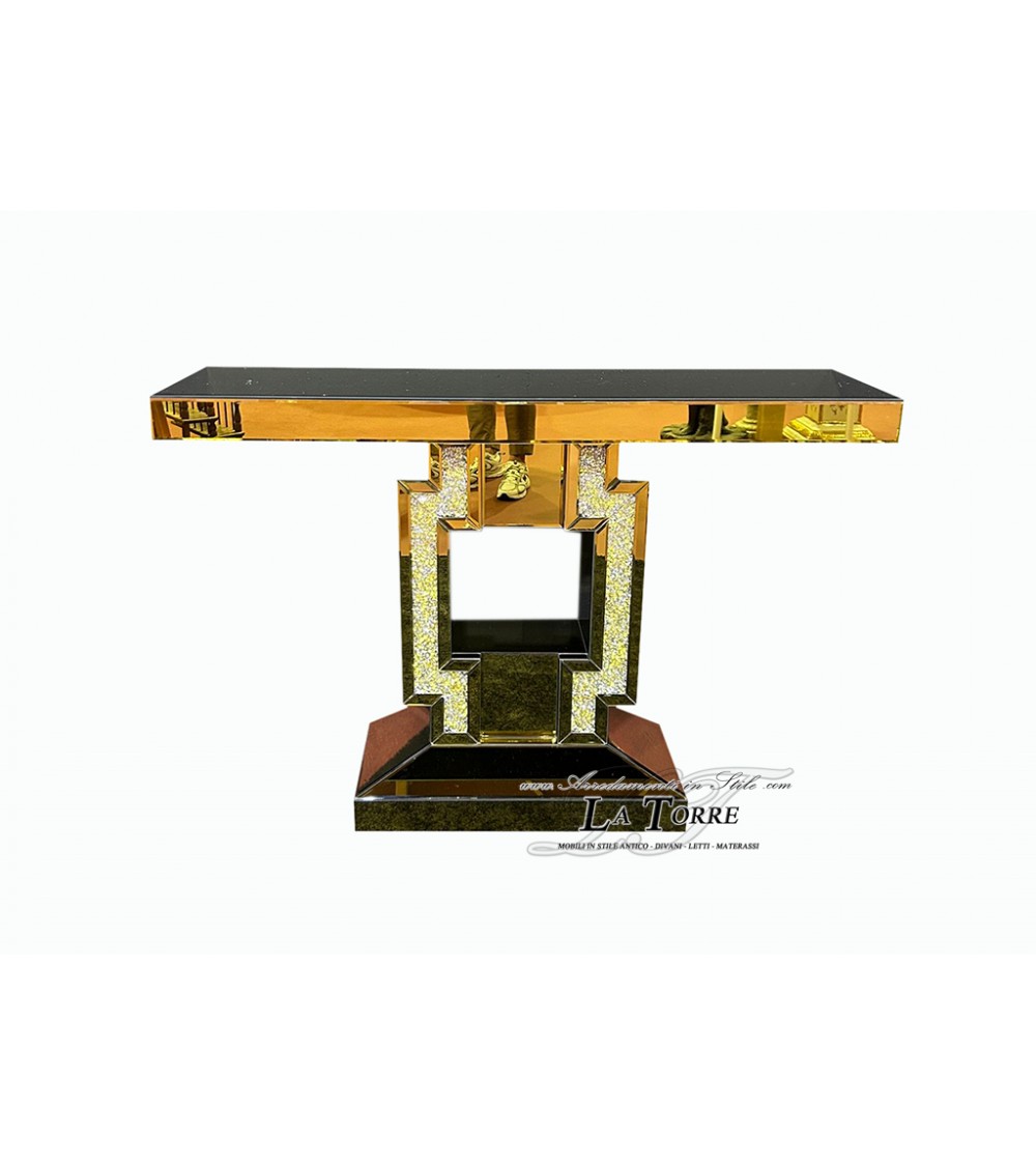 Modern Mirrored Console Table with Rectangular Base and Swarovski Crystals E48F/o
