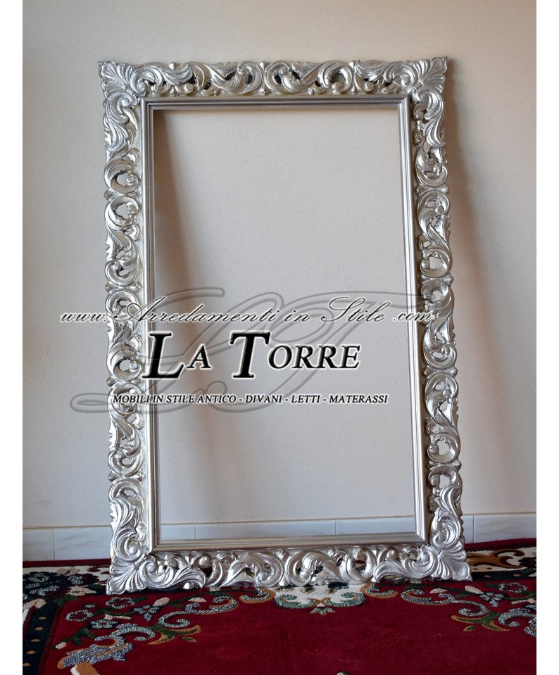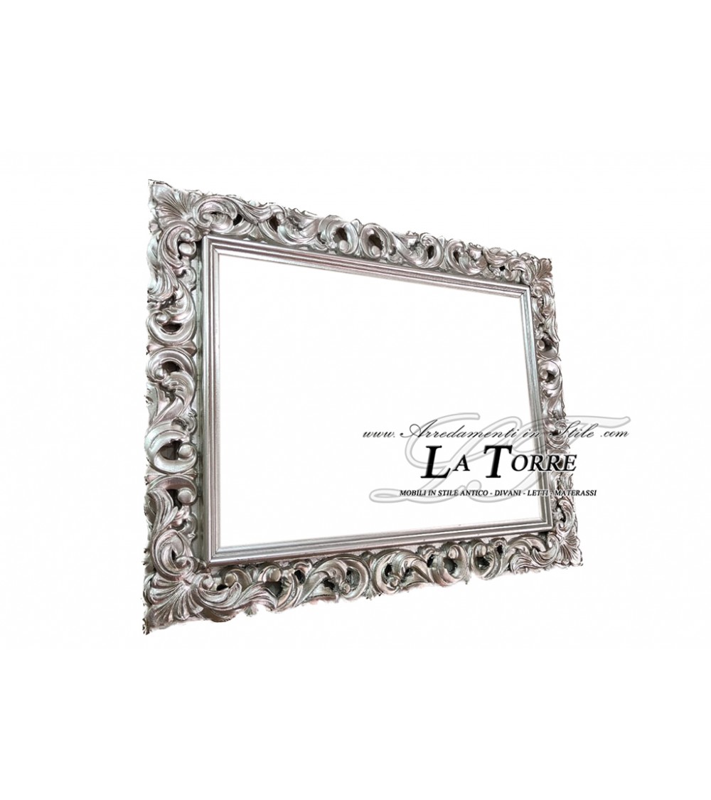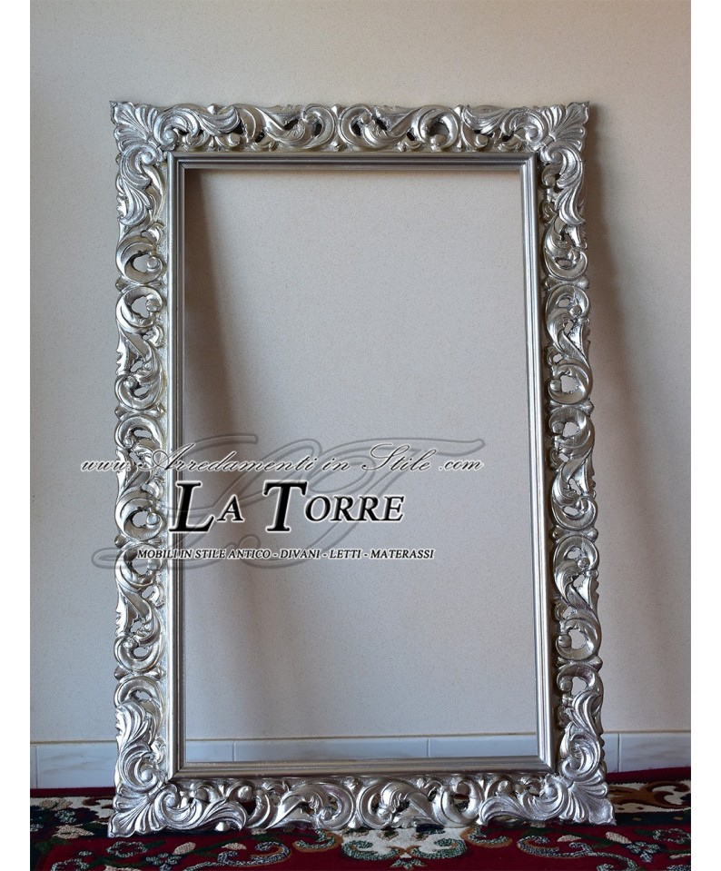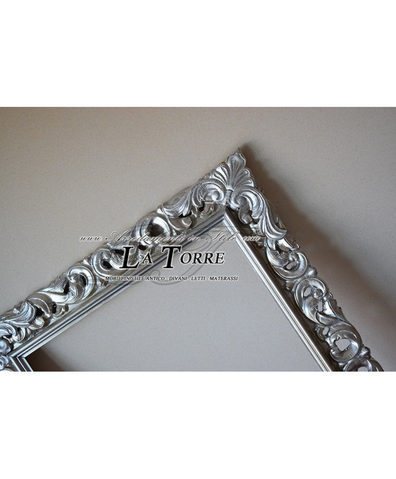 Classic baroque perforated picture frame made to measure in 1135A silver wood