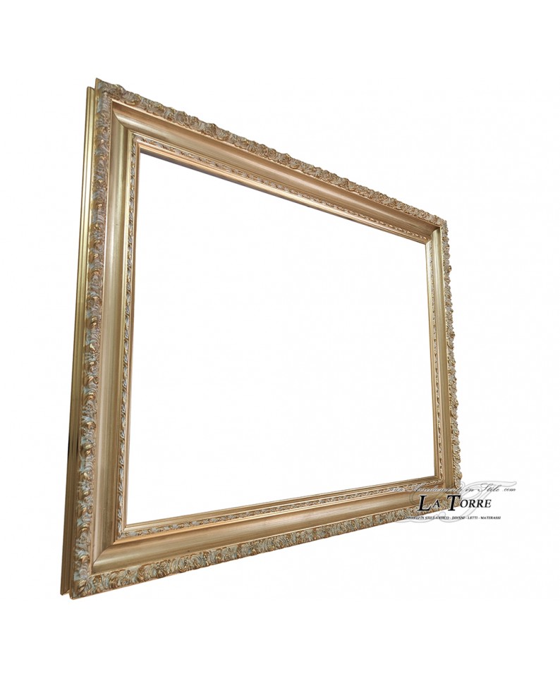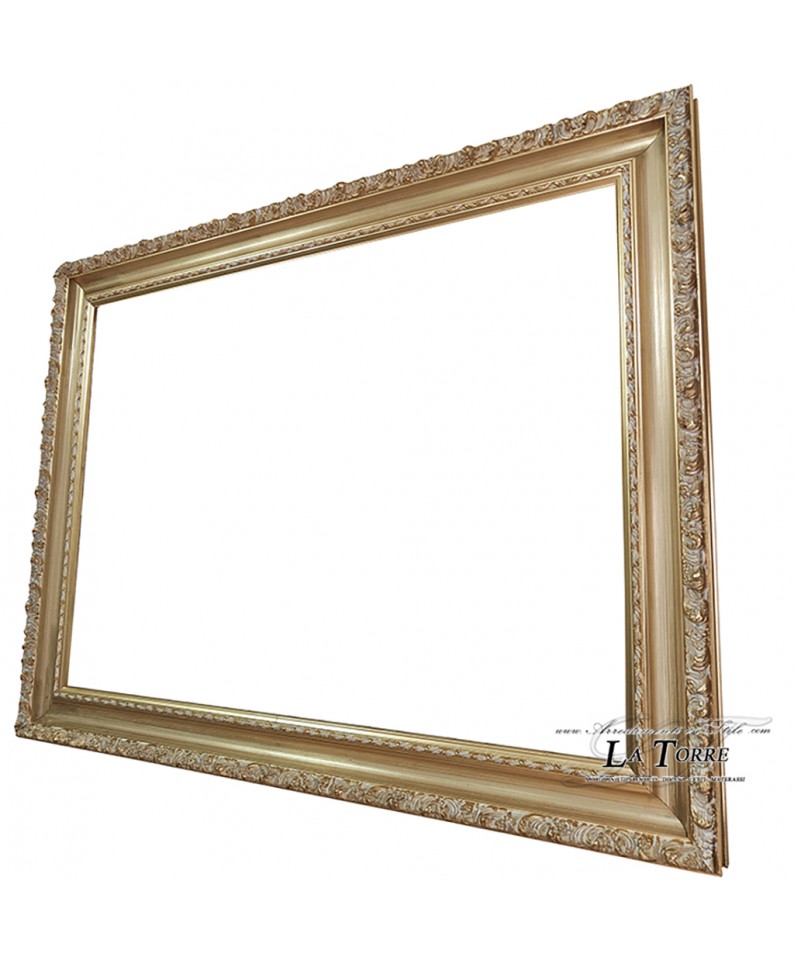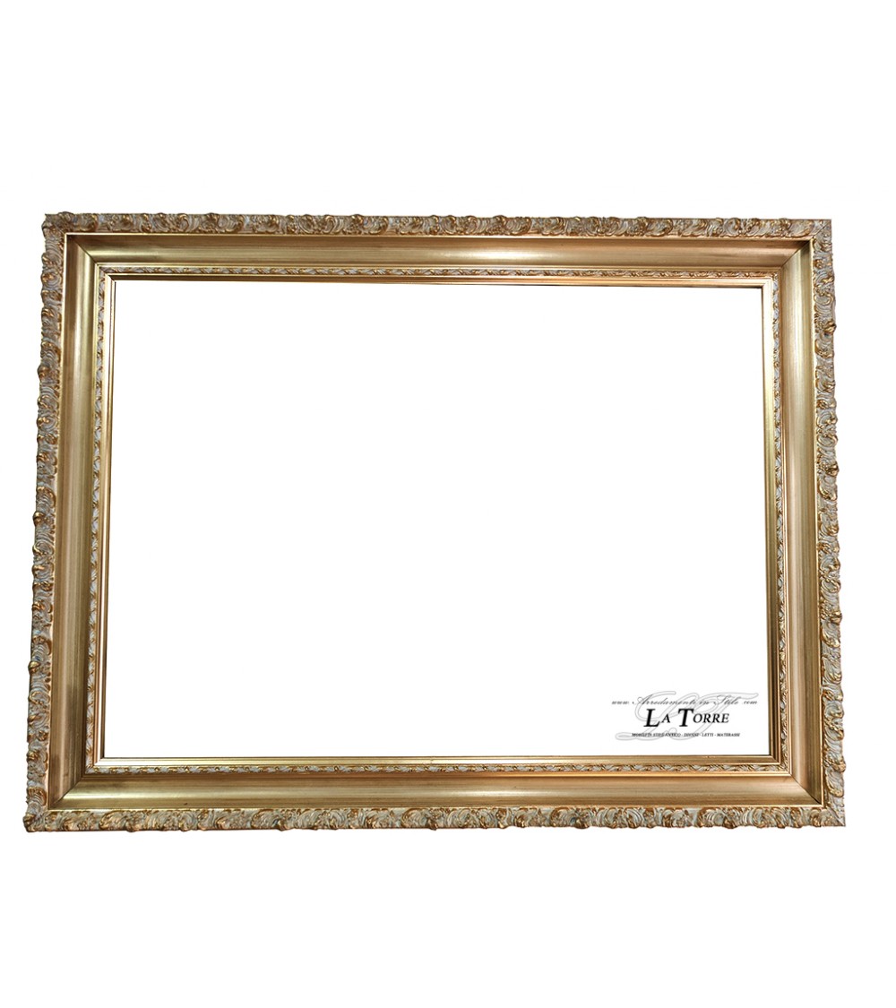 Classic baroque perforated custom-made gold frame with ivory details, safe sliding system 1045