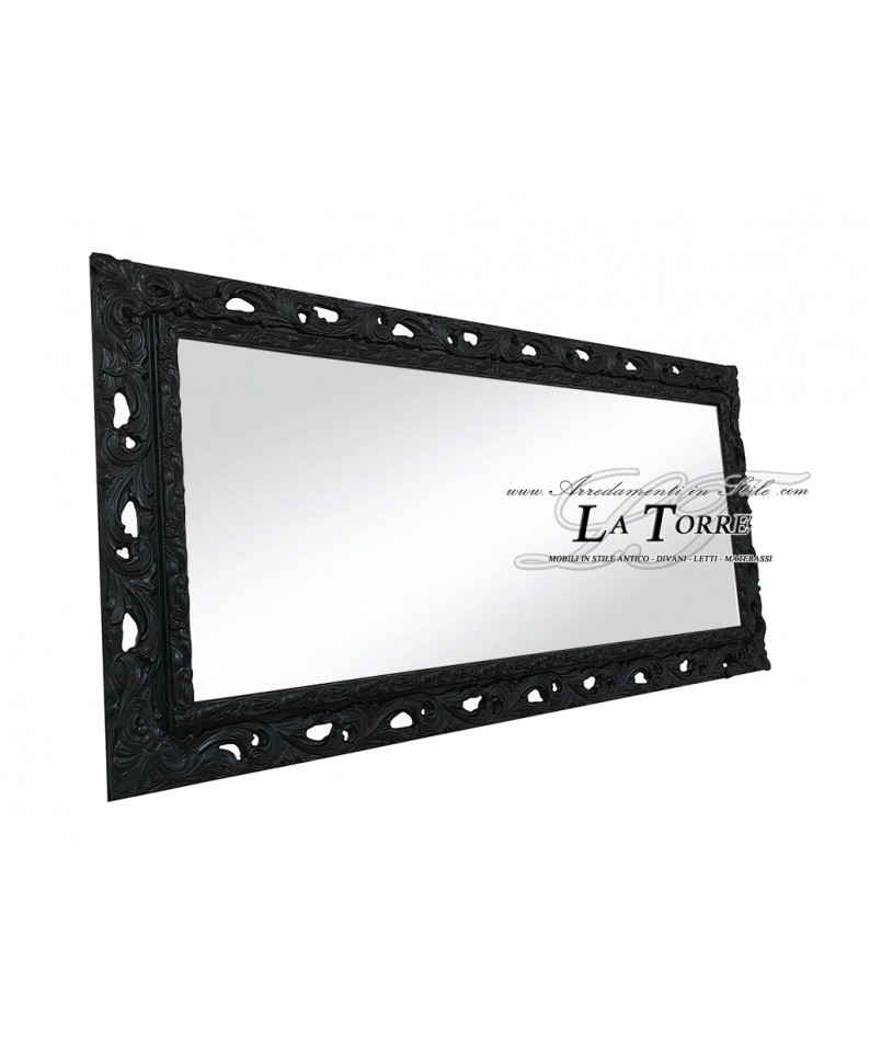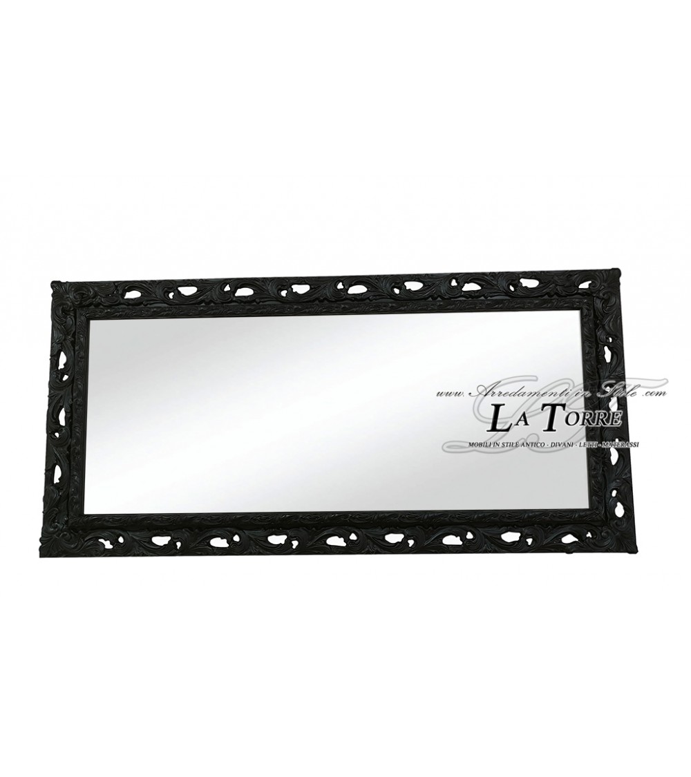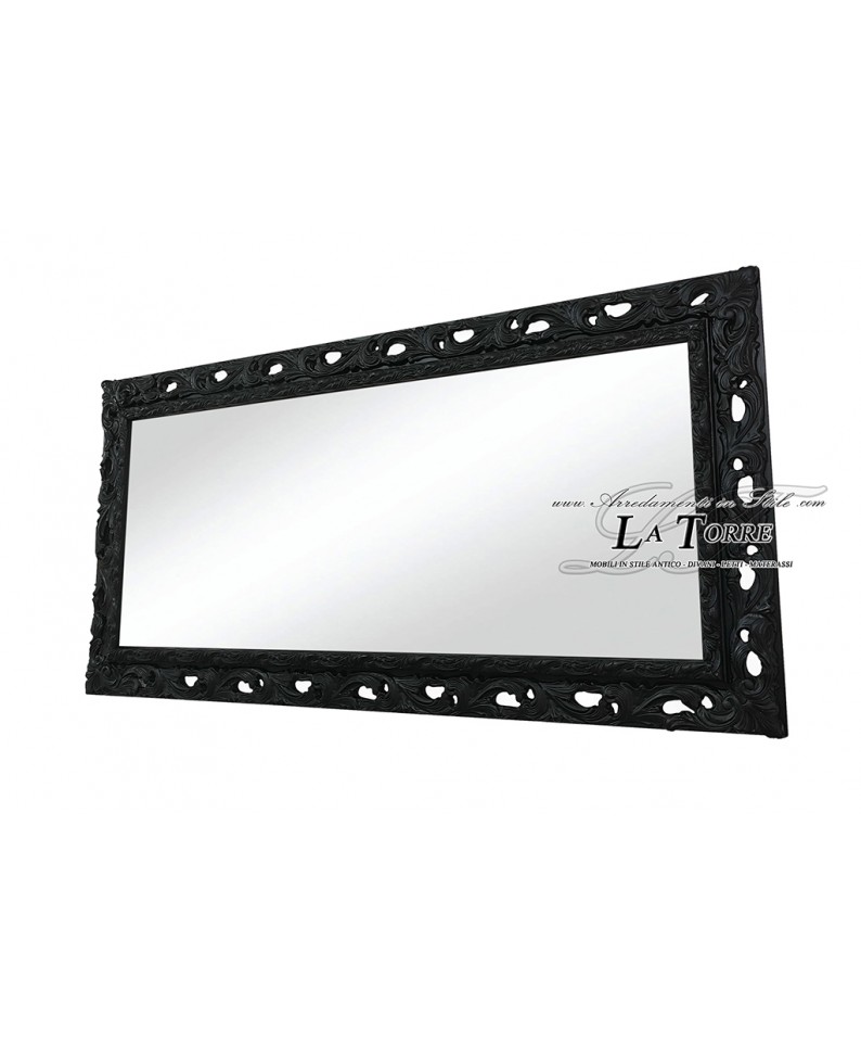 Mirror Perforated frame made to measure square in black wood baroque style GGn