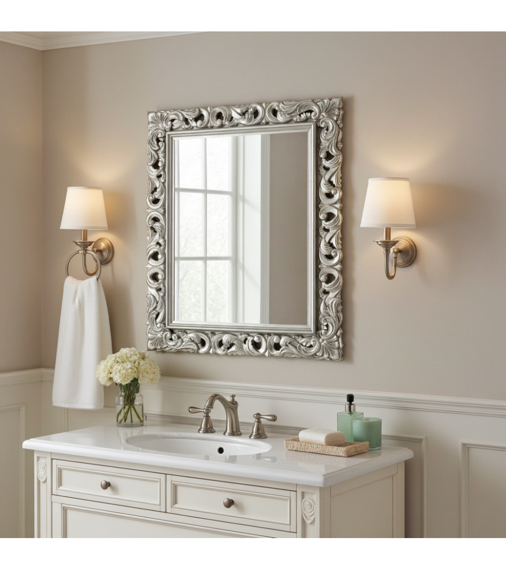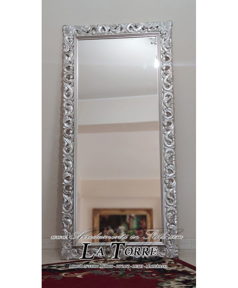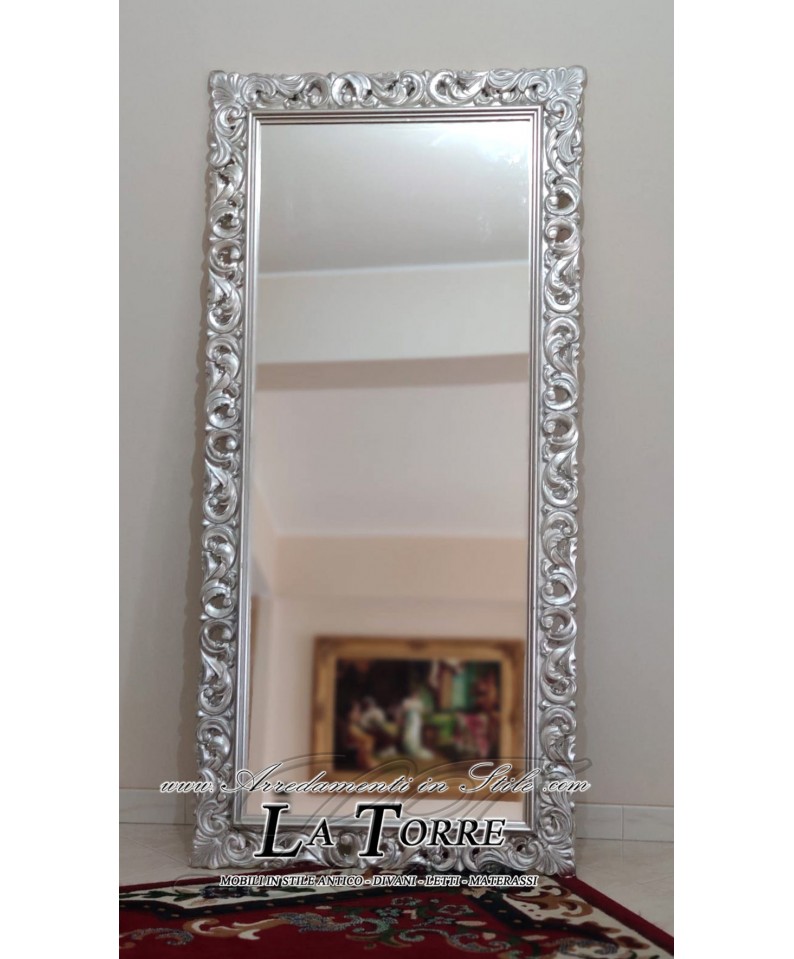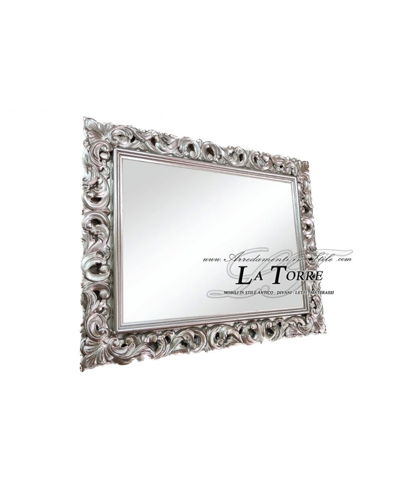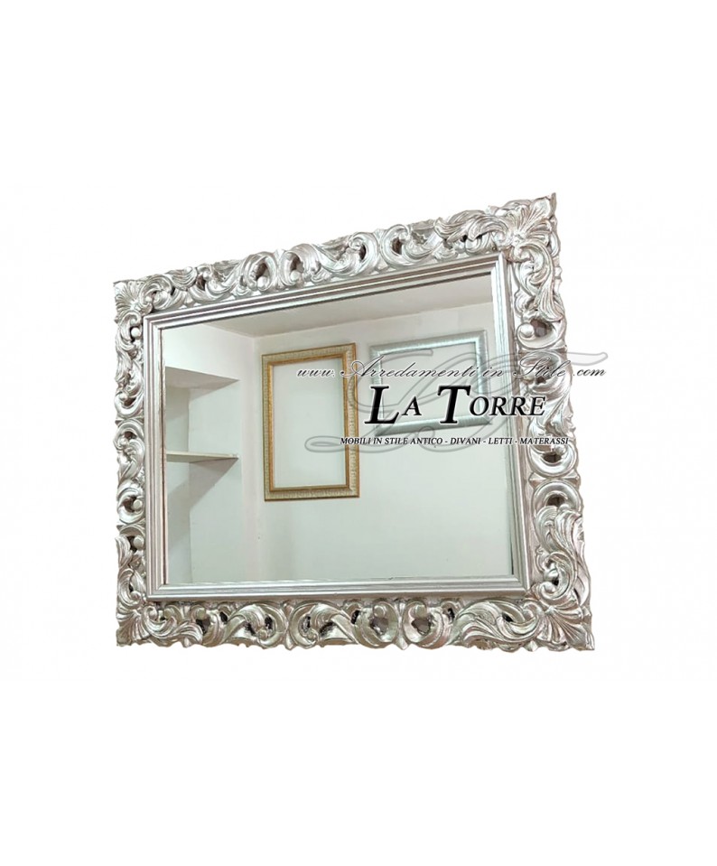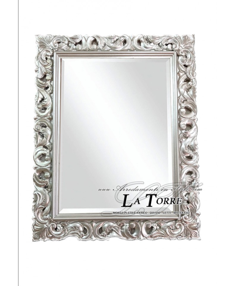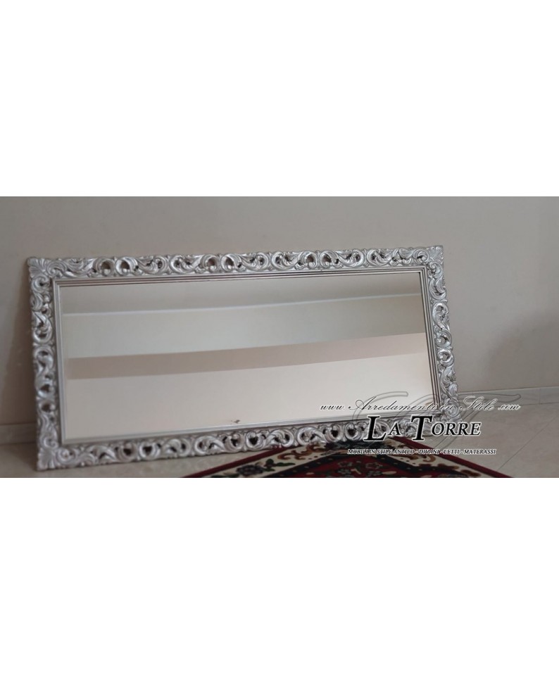 Mirror classic baroque frame perforated made to measure silver wood safe sliding system 1135A