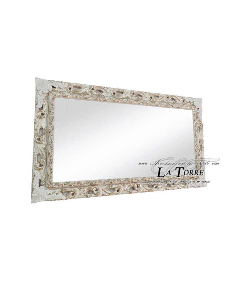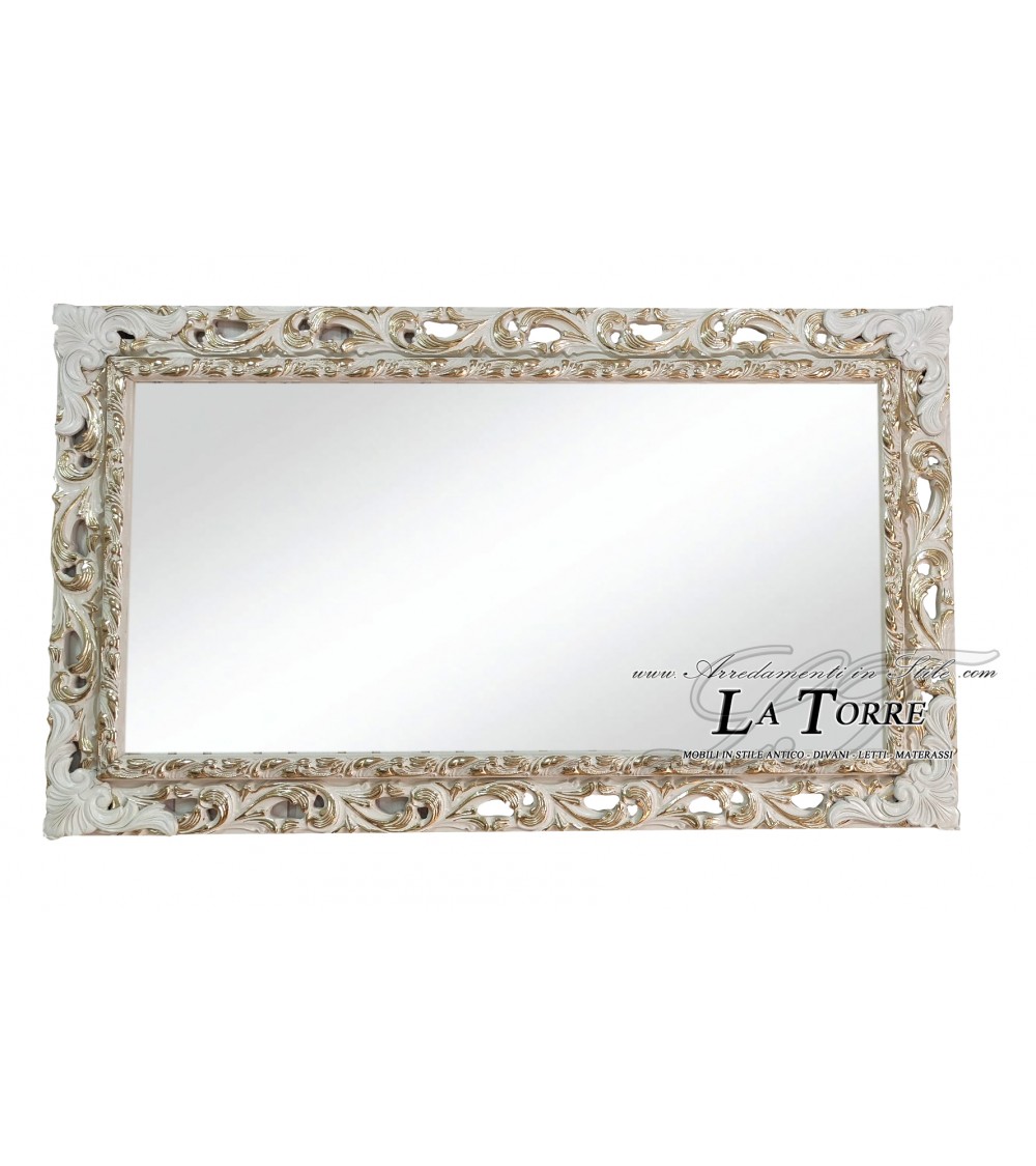 Classic mirror with perforated wooden frame, Ivory and gold baroque style, GGAVO