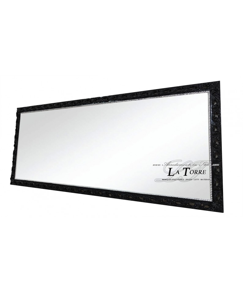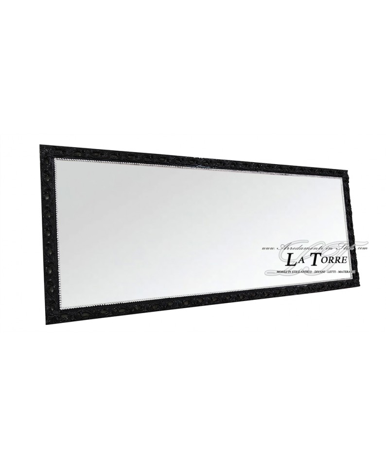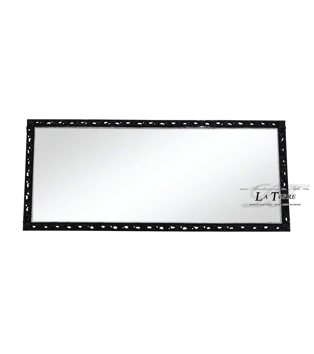 Classic baroque custom-made perforated frame mirror in black wood GM224n