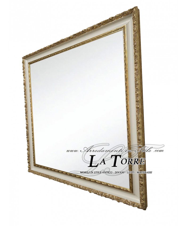 The frame is made of high quality wood , with a gold leaf finish and refined ivory-colored details that give brightness and prestige to any room.