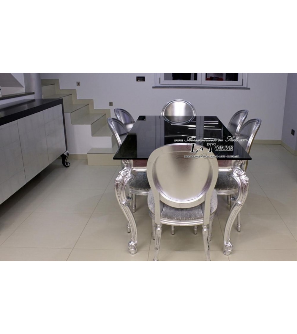 Rectangular dining table cm 180 extendable 240 baroque silver wooden top TA03