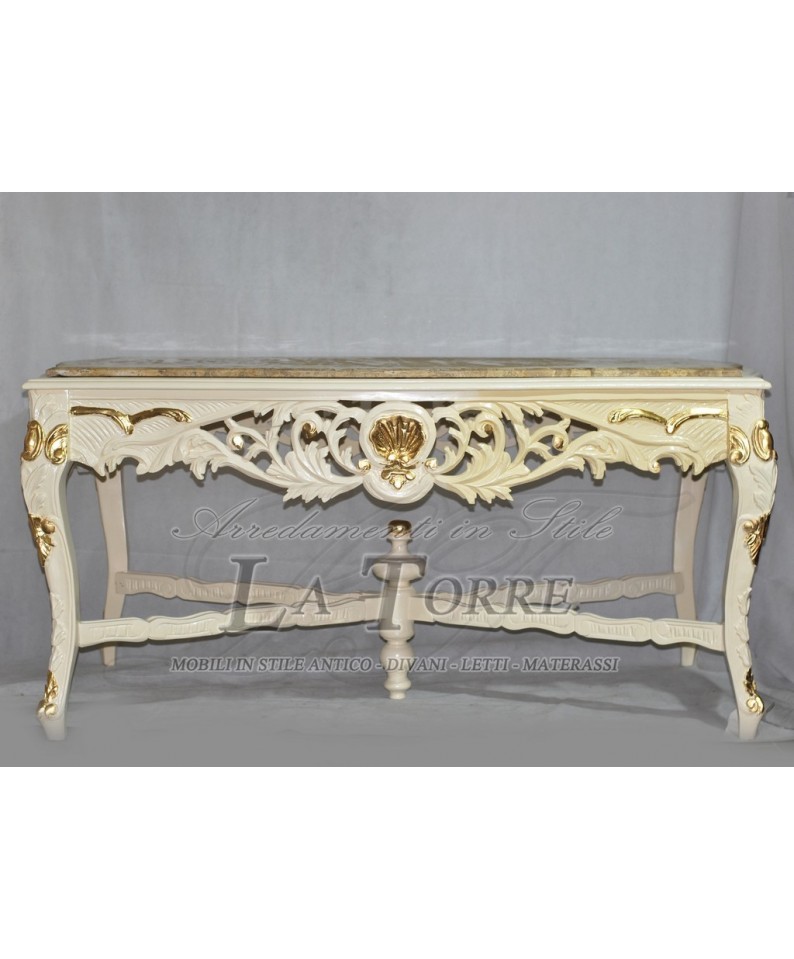 Rectangular carved wooden ivory Baroque marble dining table 190 cm Ar1669