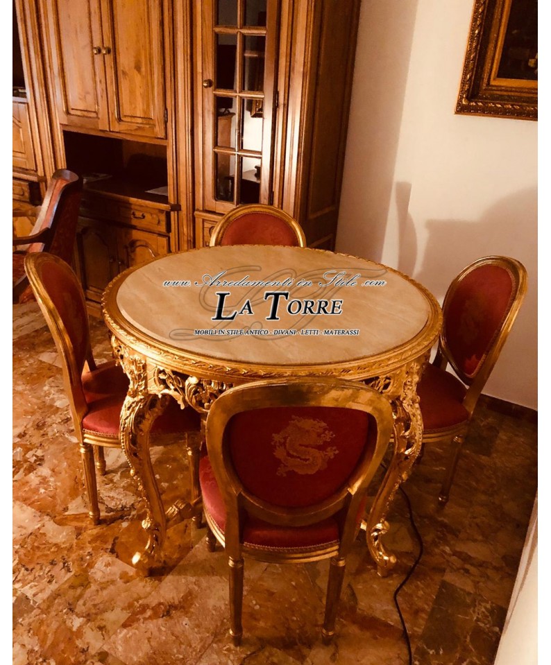 Round wood dining table carved gold marble Louis XV Barocco LT3000