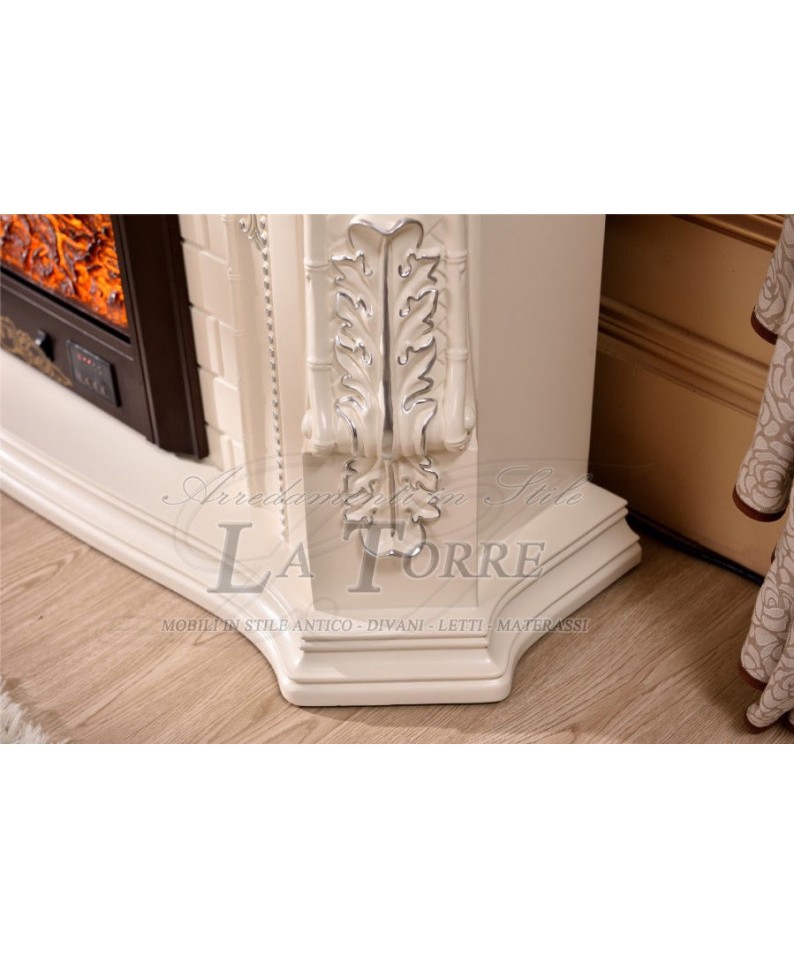 Electric fireplace Kamin fireplace English Baroque solid wood ivory 330b
