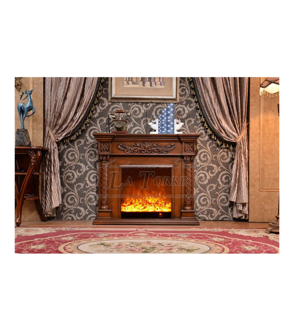 Classic electric fireplace stove in English Baroque solid wood walnut 320