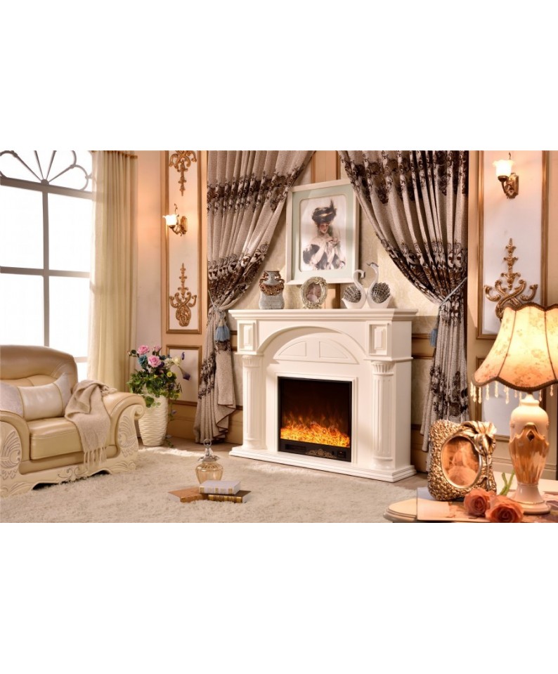 Classic electric fireplace solid wood stove Baroque English white 332B