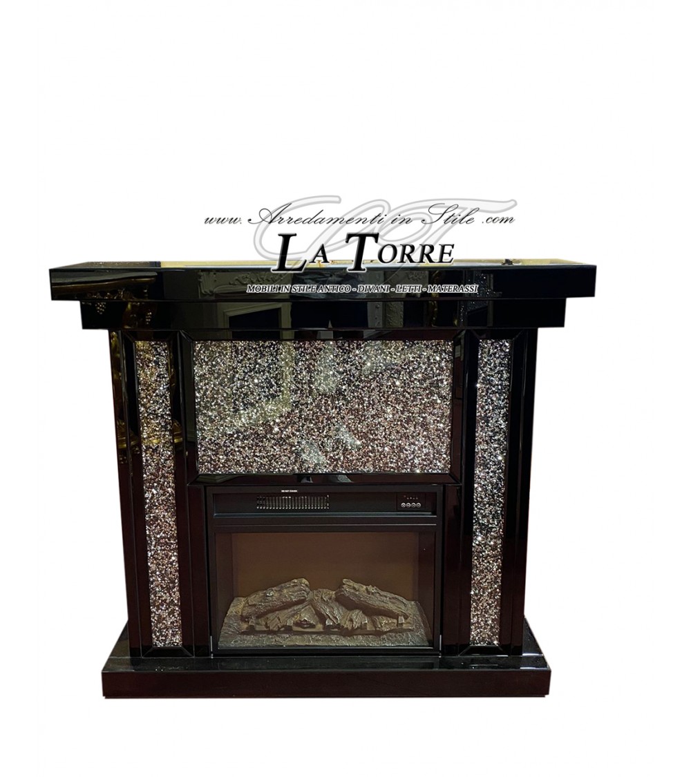Bring warmth and sophistication into your home with this mirrored electric fireplace with Swarovski crystals , a furnishing element that combines functionality and luxurious design .