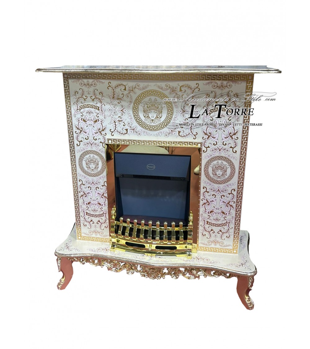 Classic electric fireplace Baroque Goddess Medusa ivory wood and gold MED15