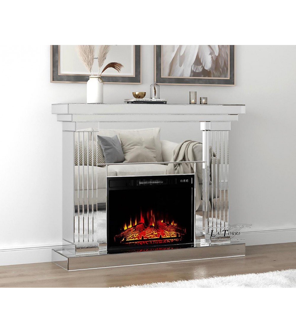 The mirrored structure reflects light, giving brightness and depth to the room, while the ultra-realistic flame effect creates a warm and welcoming atmosphere, ideal for moments of relaxation.