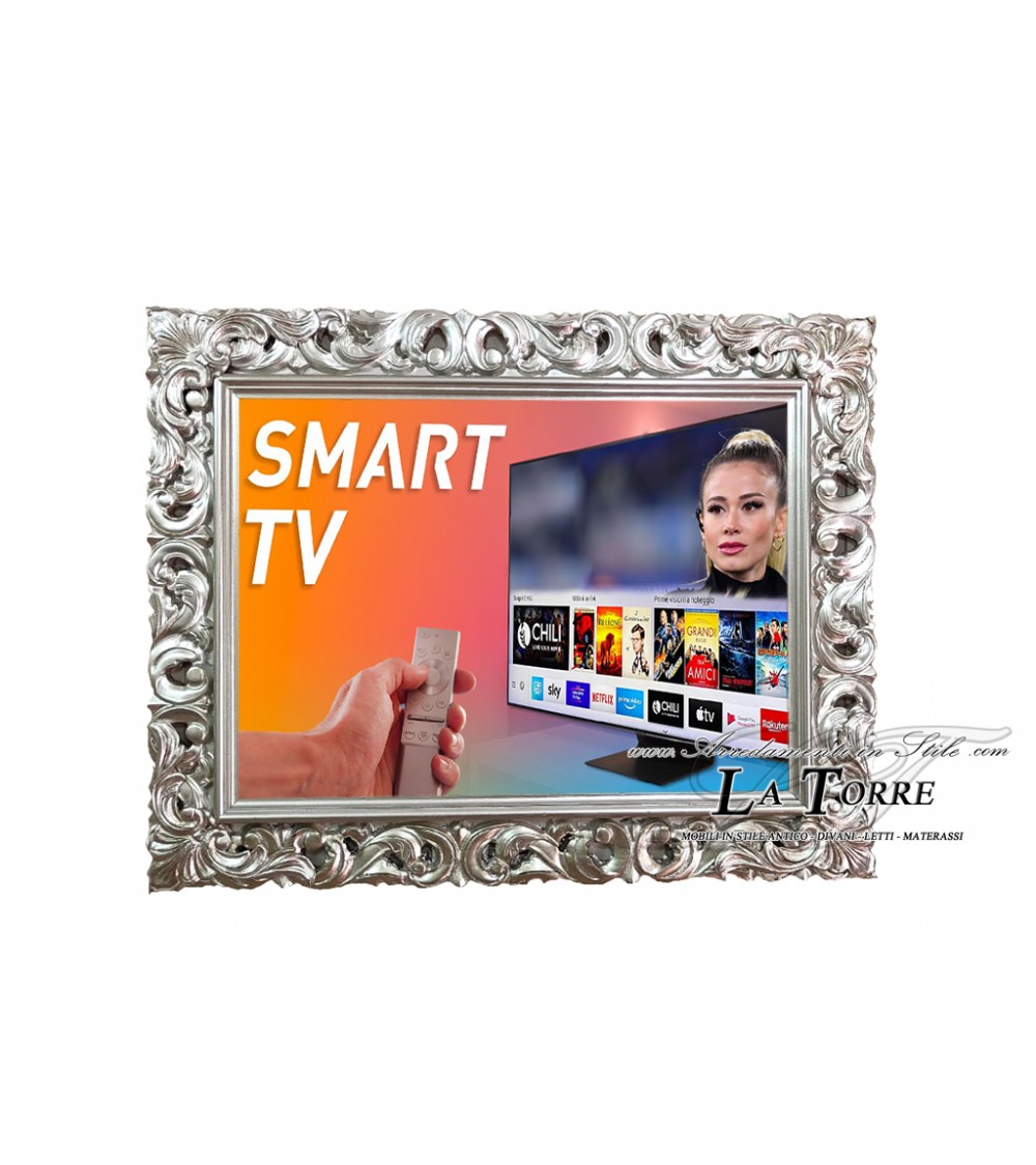 Baroque perforated wall mounted Smart TV frame TV1135A silver leaf pine wood TV