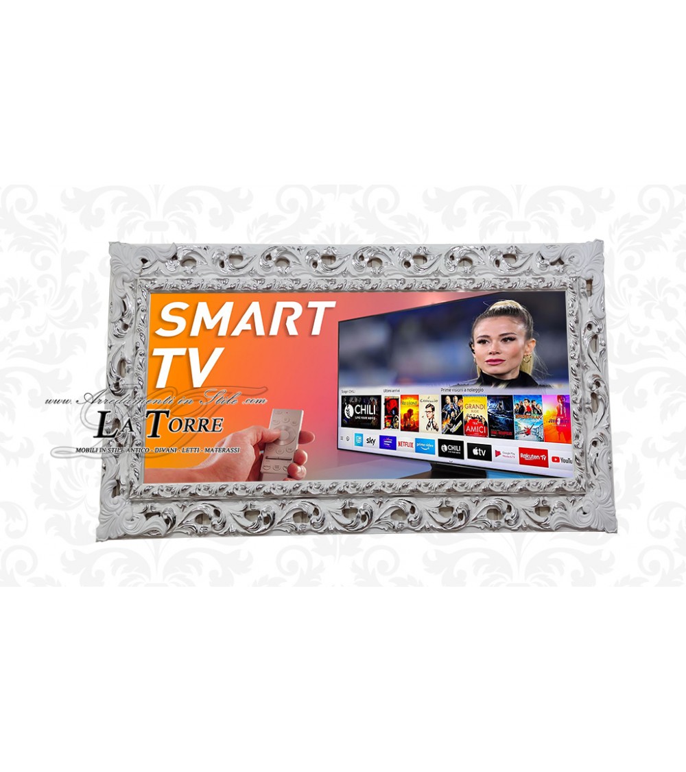 Perforated Baroque wall-mounted Smart TV frame TVGGBA in white pine and silver wood
