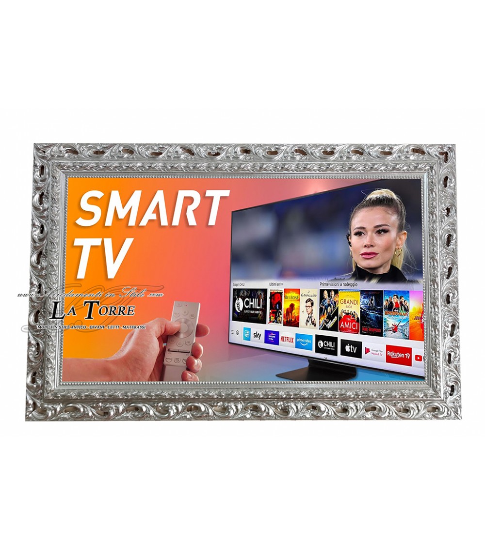 Baroque perforated wall mounted Smart TV frame. TVGA silver leaf pine wood television