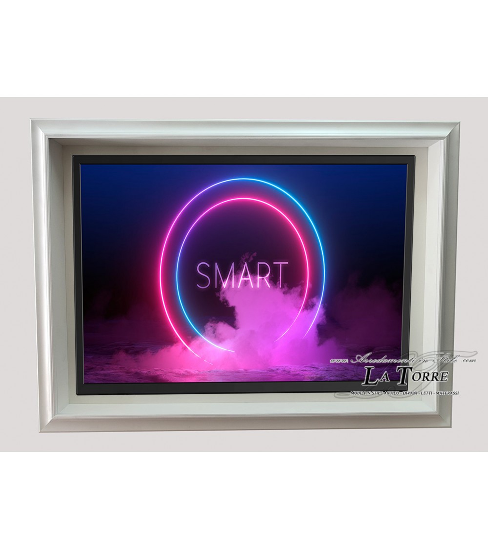 Wall-mounted Smart TV stand with Rovescio frame, classic modern style, custom-made box, white