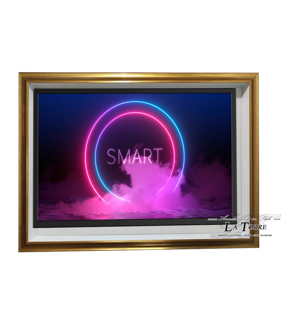 Wall-mounted Smart TV stand with Rovescio frame, classic modern style, custom-made gold box