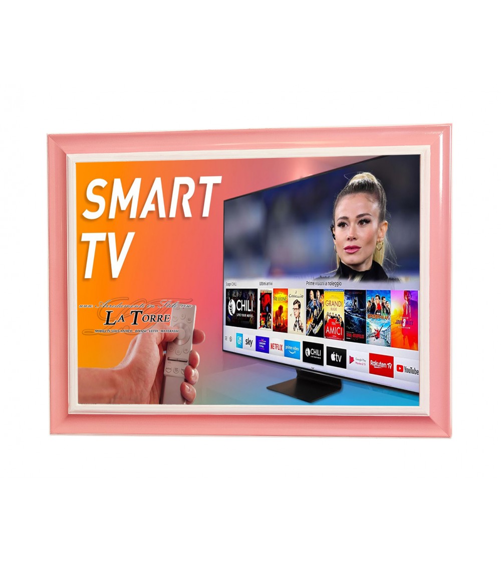 Baroque Decorative Frame for Smart TV, Pink and White, Reverse Pine Wood