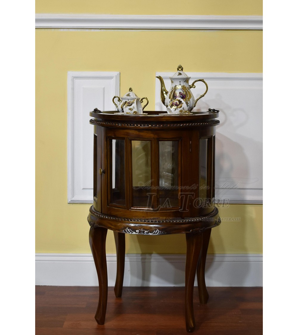 Coloniale round coffee table showcase English style bottle holder bar cabinet walnut Na32