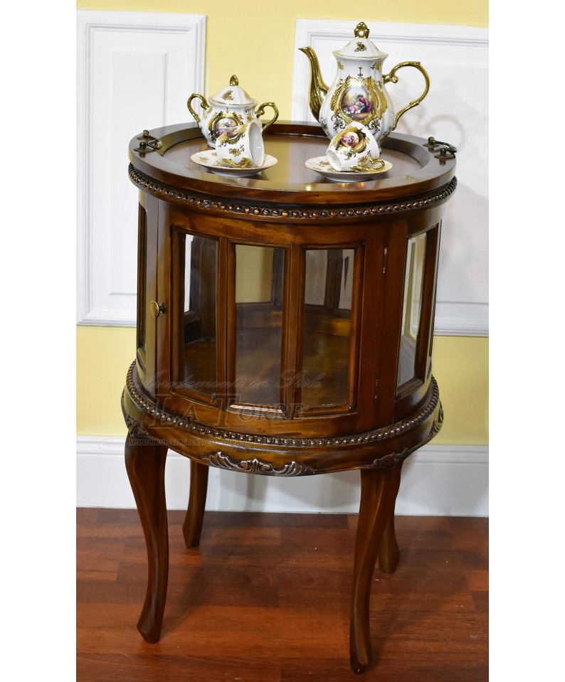 Colonial round coffee table showcase bar cabinet English style walnut Na32