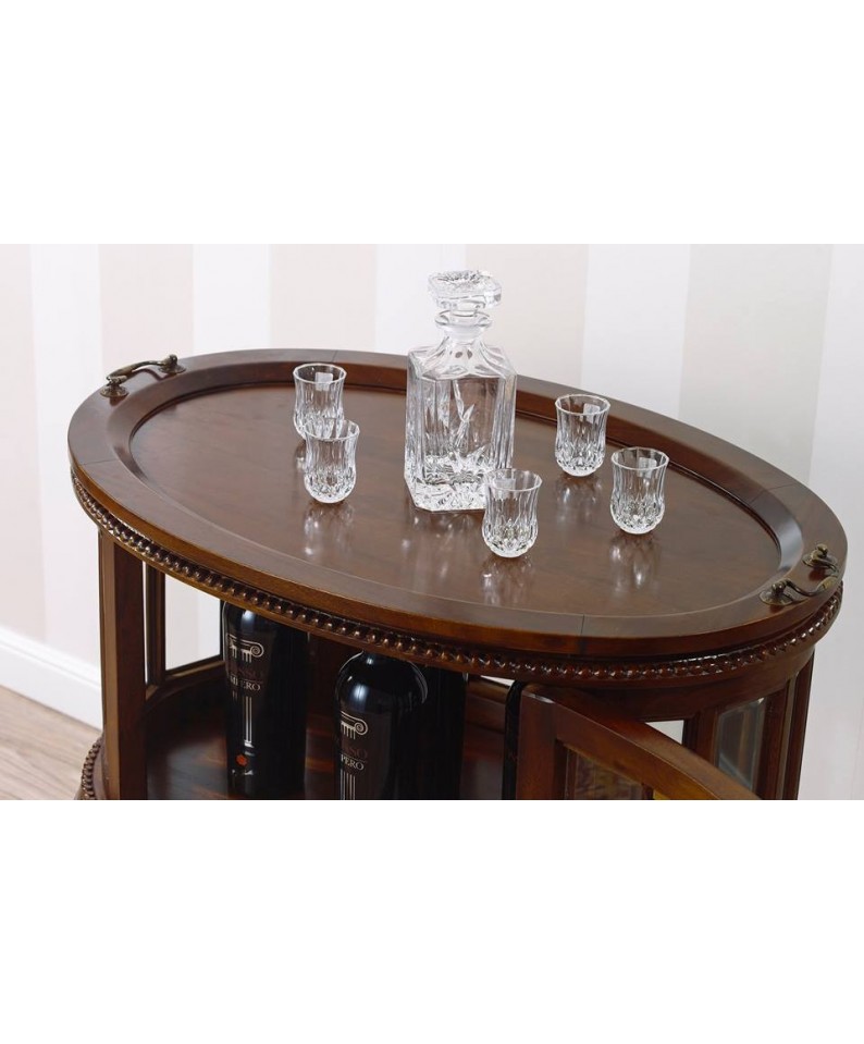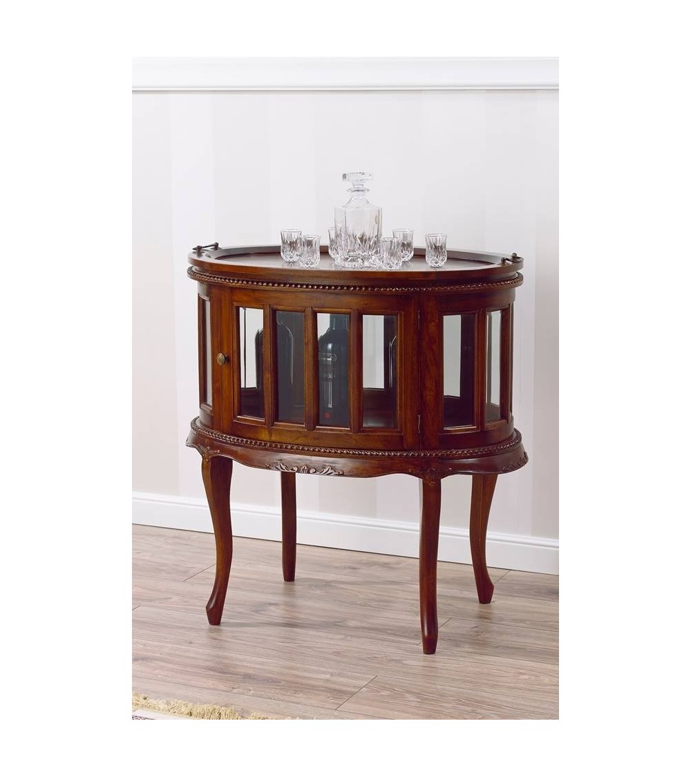 Coloniale oval coffee table showcase English style bottle holder bar cabinet walnut Na30