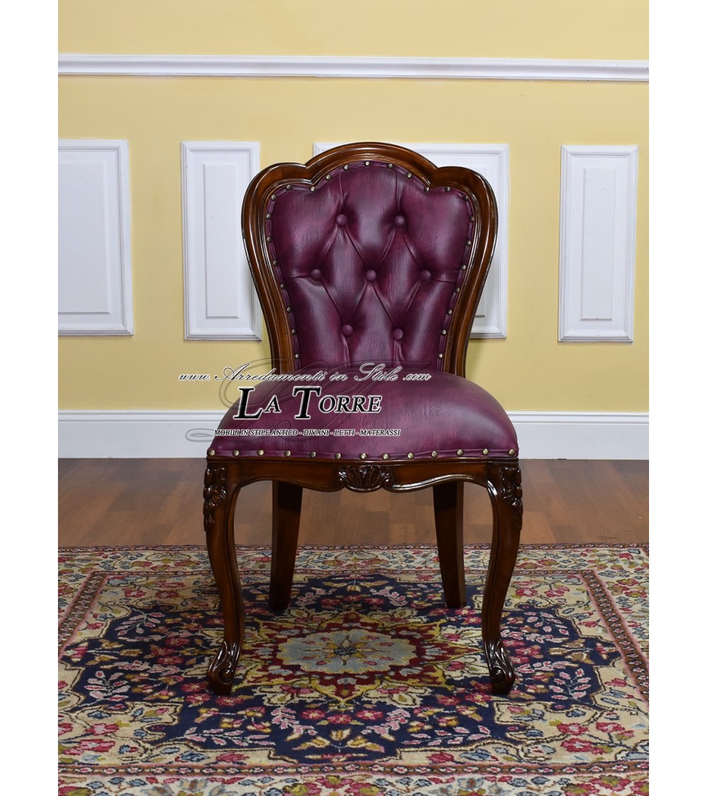 Josephine armchair English style presidential ministerial chair walnut burgundy eco-leather Na27