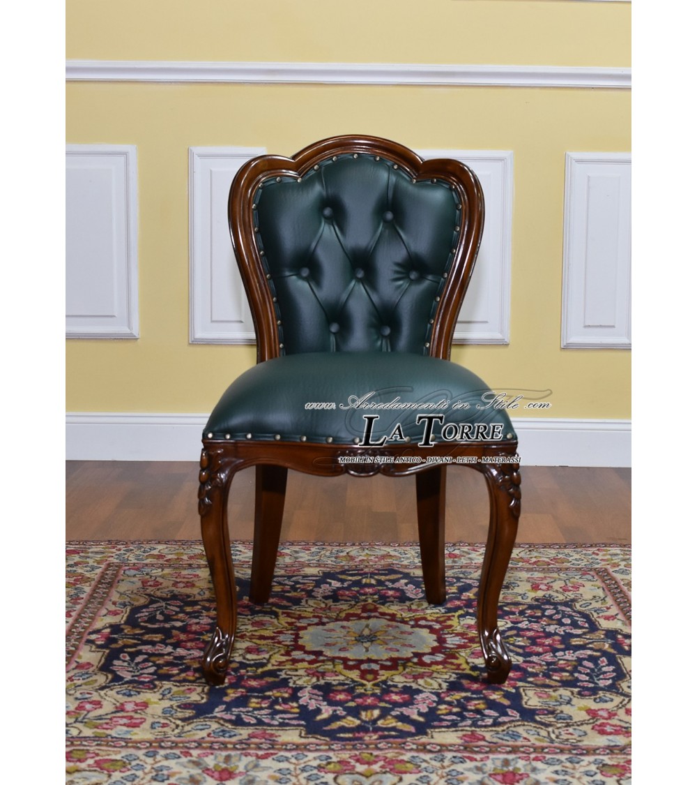 Josephine armchair English style presidential ministerial chair walnut green eco-leather NA27