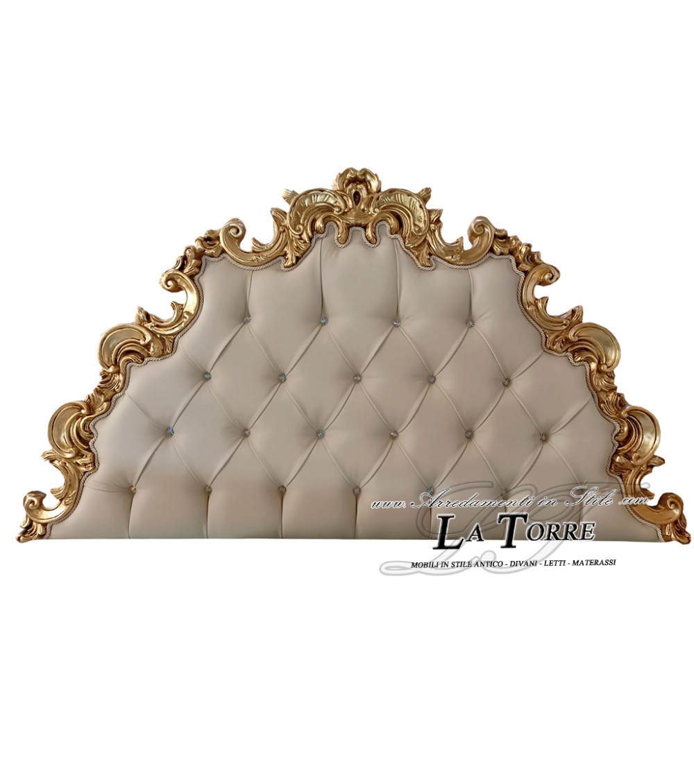 Headboard Baroque double bed in eco-leather or Swarovski fabric wood silver gold Rebecca